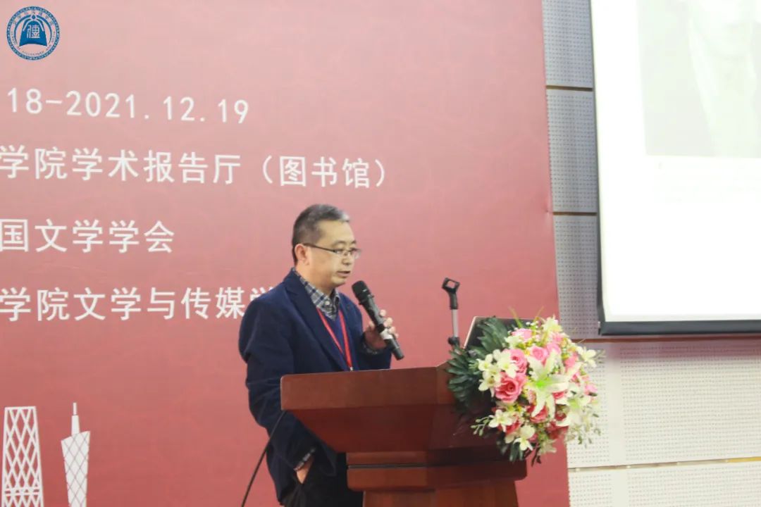 彭玉平会长作为广东省中国文学学会会长上台致辞。他首先对广东省中国文学学会的四位前会长做出的努力与贡献表示了感谢。随后,彭会长对学会未来的发展发表了自己的看法。他认为,在不同学科的交叉视野中,人们对文学的研究可以上升到一个全新的境界。因此,可以在跨学科的基础上,对文学进行深入的研究。他指出,本次广东省中国文学学会2021年会及中国文学研究与教学研讨会共同开展具有重要意义:“教学与研究彼此相关,互相促进。对于高校而言,一种理想的文学生态正是创作、教学与研究三位一体的,我们期待能在这次会议上能多层次多角度多碰撞,从而能多感悟多认识多收获。”