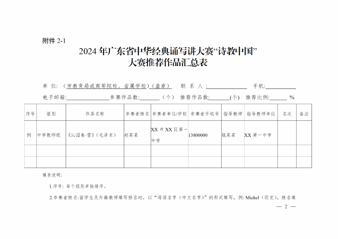 3.如报送单位超额报送或报送主体不是各地级以上市教育局、高等院校、省属中职学校或省属中小学校等情况,作品均按无效处理,不予退回,并上报广东省语言文字工作委员会。