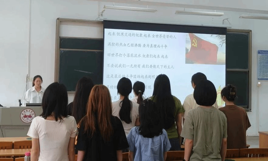 会议伊始,全体同志起立,奏唱《国际歌》。会上,同志们结合案例逐条学习新修订的《中国共产党纪律处分条例》。