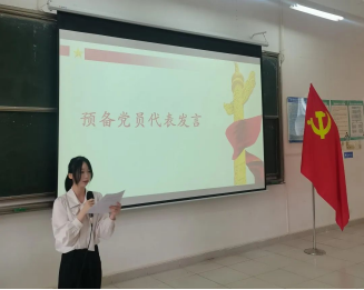 宣誓完毕后,来自2020级汉语言文学4班的黄雨晴同志作为预备党员代表发言。黄雨晴同志表示,自己很荣幸能够成为一名预备党员,入党是一个新的奋斗起点,也必将面临一定的挑战。未来会以更饱满的精神状态对待学习和工作,以更谦虚的态度待人接物,争取如期转正,绝不辜负党组织的信任。