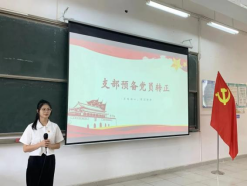 最后,⽀部书记陈伟霞同志表示希望转正的同志们能以此为新的起点,继续发挥党员的先锋模范作用,在学习和工作中践行共产党人的初心和使命,做一名优秀的共产党员。