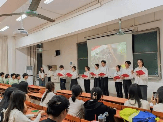 在此次具有特殊意义的活动中,支部邀请了张晨光、许嘉毅、林颖斌、许思倩、廖金勇五名退役同志。活动伊始,支部同志和23级同学们齐聚一堂,共同观看视频高校学子缅怀先烈版《那些花儿》。随着抒情的旋律缓缓响起,同志们了解了这些革命烈士的英勇事迹,他们为了保卫祖国、守护人民的幸福生活,不惜付出巨大的牺牲,用鲜血和生命谱写了一曲曲感天动地的英雄赞歌。先烈们用生命诠释了信仰与忠诚的深刻内涵,为大家树立了光辉的榜样。