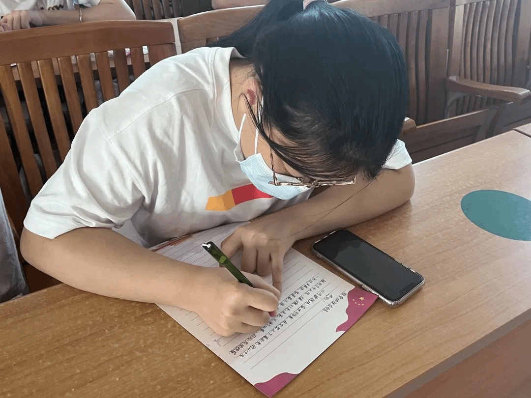 活动进行时,忆往昔岁月峥嵘,看今朝豪情满怀。同志们小心翼翼地落笔于信件上,仿佛从某处汲取了强大的力量,书写着对繁荣昌盛的祖国的讴歌。