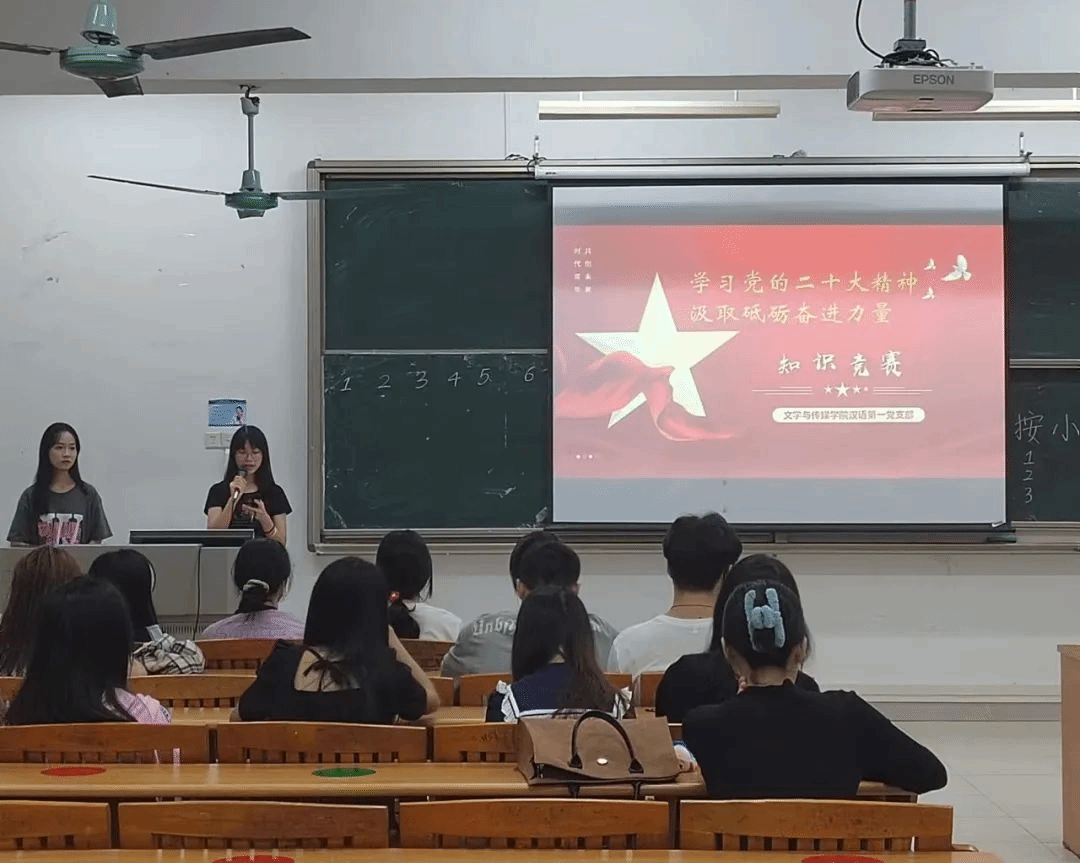 为深入学习贯彻习近平新时代中国特色社会主义思想,以实际行动学习宣传贯彻党的二十大精神,2022年11月12日晚上,汉语第一党支部以“学习党的二十大精神,汲取砥砺奋进力量”为主题,在1教104开展了知识竞赛党日活动。