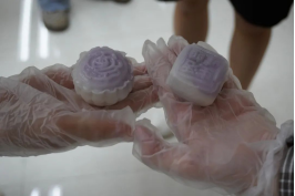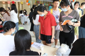明月寄思念,月饼忆乡情。第三项活动便是——冰皮月饼制作。揉面团、包馅、滚圆、压模、脱模、成形……工作人员耐心地给大家讲解制作月饼的方法和技巧,并进行示范。在工作人员的指导下,大家有条不紊地开始现场制作。工作人员钟惠宁表示“之前主要是在过节的时候,在家跟着我姐姐学着做的,并且有手工制作月饼的经验,所以在指导起来会游刃有余一些。”在一双双巧手的揉捏下,一个个精致的月饼呈现在了大家的眼前,现场充满了和谐友爱的浓厚氛围。