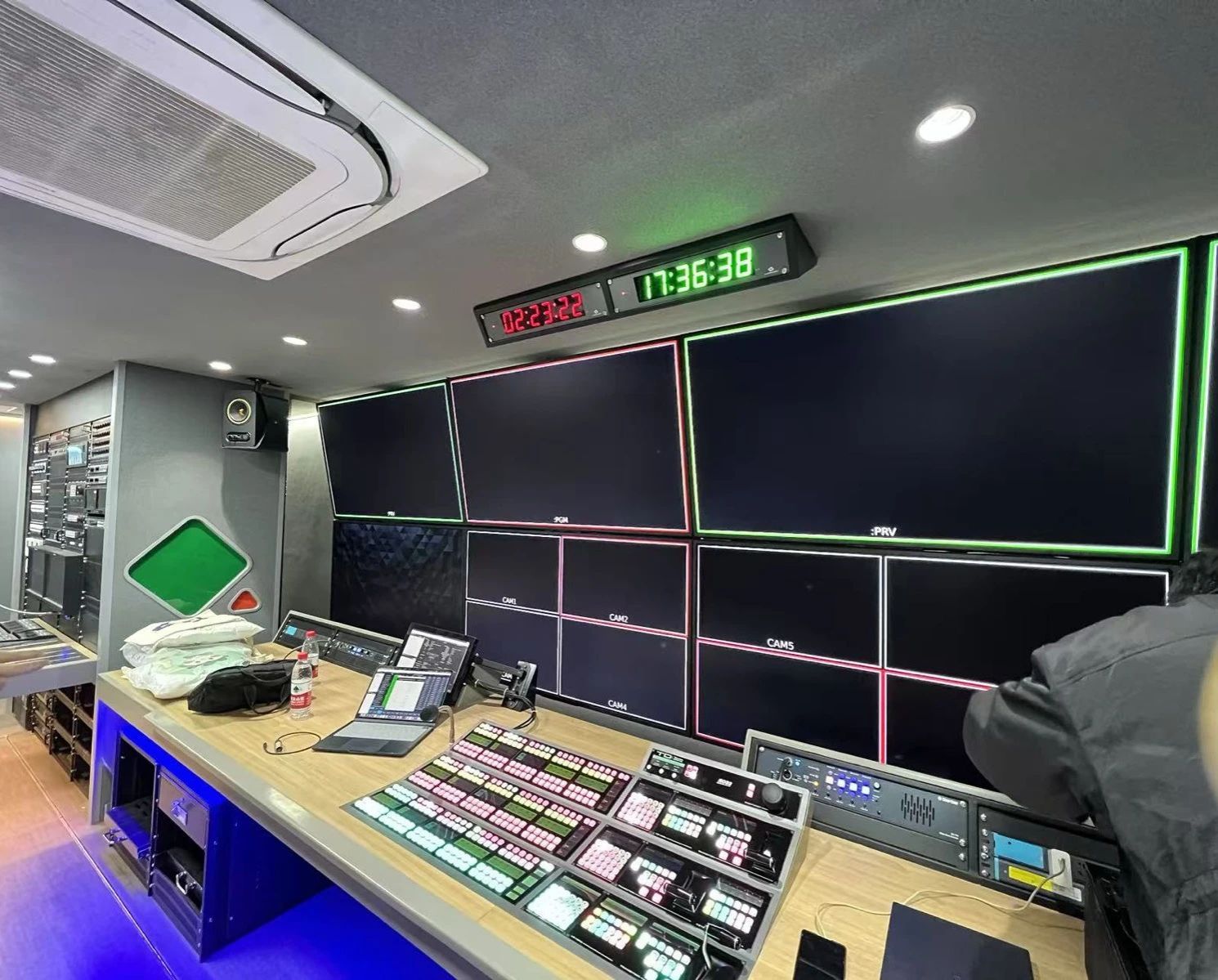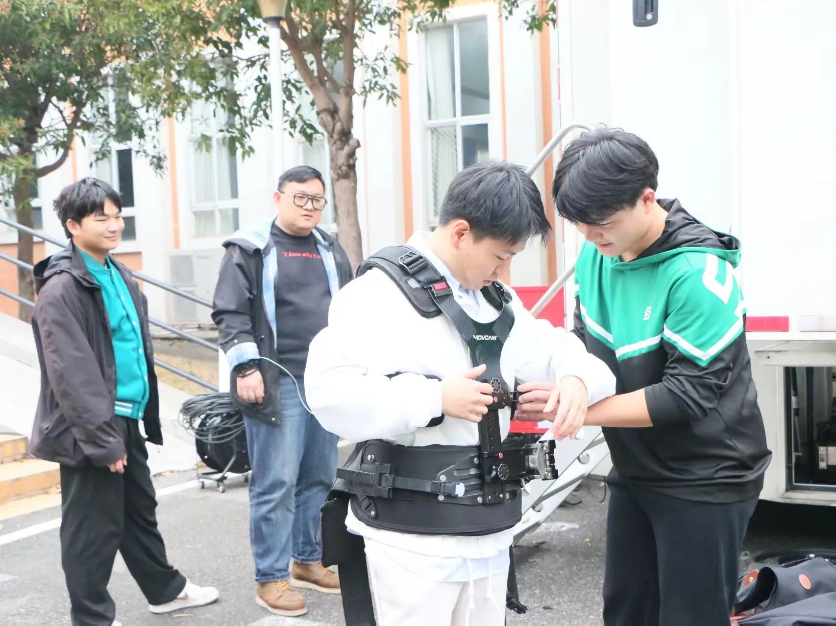 交流会前,徐宏董事长亲自带领同学们参观公司的全媒体超高清转播车,并着重介绍了转播车的先进设备与功能。他向同学们介绍了转播车的运作流程和技术细节,让同学们对转播车的运作有了直观认识。在徐宏董事长的指导下,同学们亲自上车操作设备,体验转播工作的实际操作流程。