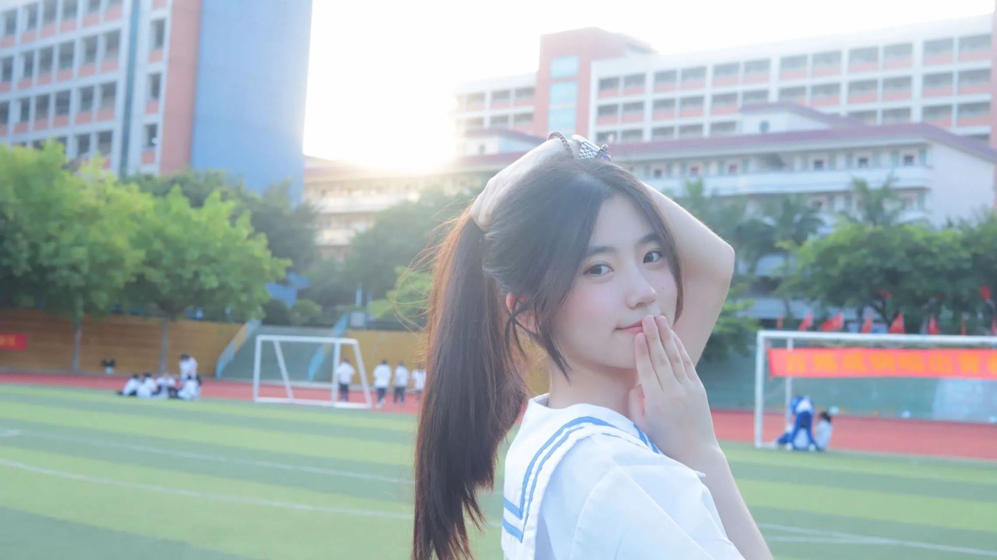 过蓝色的色调展示青春的活力,模特的校服和操场象征青春的回忆,找寻属于我们的青春回忆。