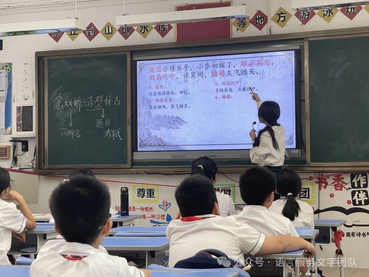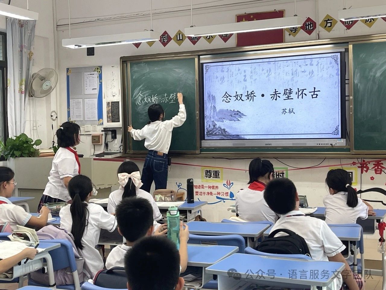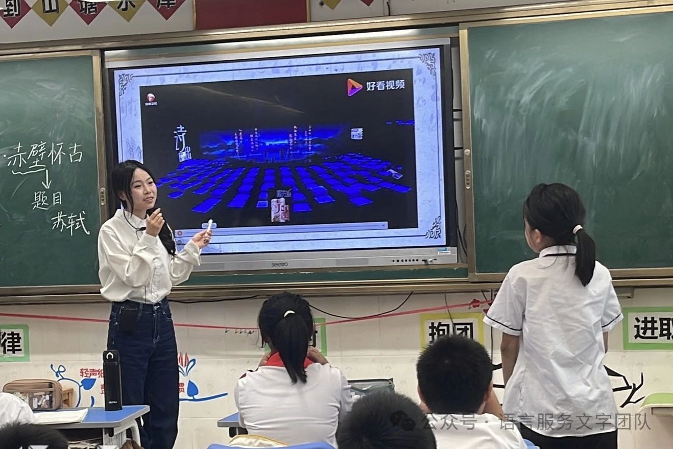 立于江水之边,看着滚滚东去的长江之水,往往会引起人们的思考。今天,就让我们一起走近苏轼的意境空间,一起品读《念奴娇·赤壁怀古》。《念奴娇·赤壁怀古》是宋代文学家苏轼的词作,是豪放词的代表作之一,曾被誉为“古今绝唱”。苏轼的一生都在经历仕途的坎坷,但他困顿人生的诗意值得我们品味。9月30日,威廉希尔williamhill中文语言文字服务团队的同学们在石巧如老师的带领下,来到从化区流溪小学,开展了一节韵味无穷的古诗词课堂。