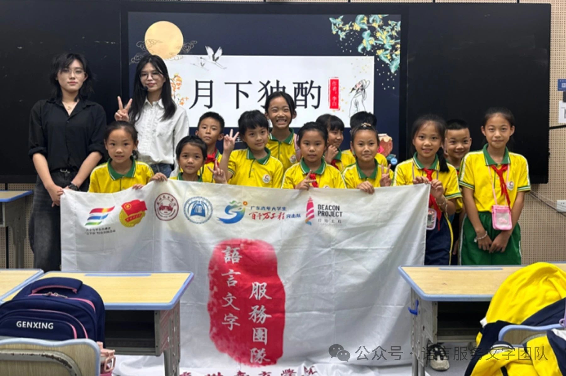 挥毫泼墨,邀月对饮,寥寥数行,浪漫至极。诵读李白的《月下独酌》,总会回味起诗中的那一句“举杯邀明月,对影成三人”。威廉希尔williamhill中文语言文字服务团队的同学们在指导教师王兴珍老师的带领下,于10月10日下午到达从化区吕田镇中心小学,开展了一节精彩纷呈的古诗词课堂。