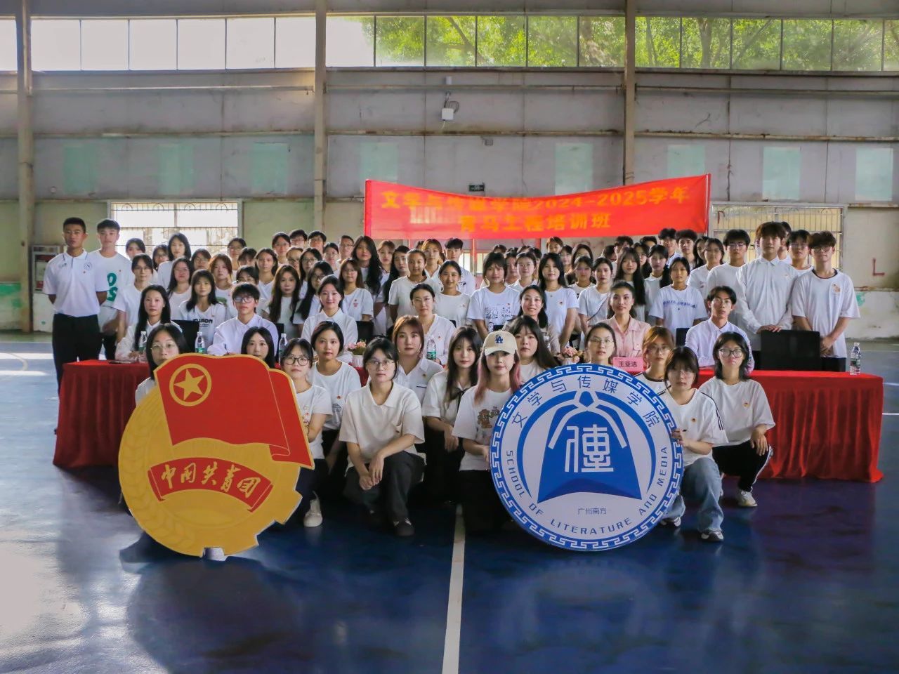 随后,素质拓展活动拉开帷幕。此次活动分为三场,分别是“珠传千里”、“蜈蚣赛跑”和“过河拆桥”。学员们积极踊跃地参与其中,在精彩有趣并紧张激烈的比赛里,大家共同商议策略,争分夺秒地为各自的小组赢得荣誉。学员们充分展现出团结协作、奋勇争先的精神风貌。素质拓展活动结束后,全体学员合影留念,至此,第四期青马工程培训班开班仪式暨第一期素质拓展活动圆满落下帷幕。