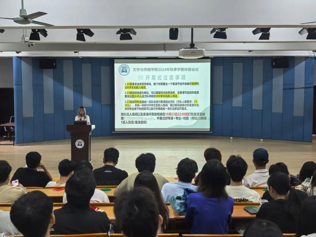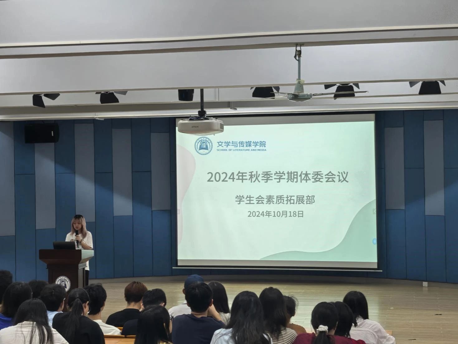 会议伊始,学生会素质拓展部负责人熊瑶同学对学生会素质拓展部工作内容以及本学期即将开展的各项文体活动进行了简要介绍,同时也对体育委员的工作职责进行了进一步明确,提醒大家要及时留意工作群发布的各项通知并转发至班级群,积极动员班级同学参与到学院的文体活动中来。