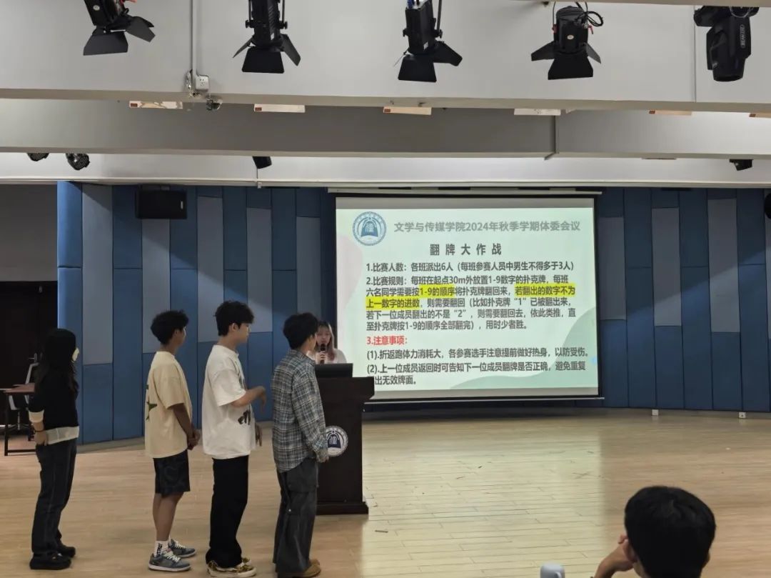 会上,熊瑶同学就学院即将举行的第十二届趣味运动会进行了相关讲解,主要包括比赛项目介绍、比赛规则以及计分方式。随后,素质拓展部的学生工作人员进行了比赛项目的现场演示,强调了运动时的注意事项。最后,会议再次强调了趣味运动会期间的安全问题以保障运动会正常秩序,帮助学生创造良好健康的比赛环境。
