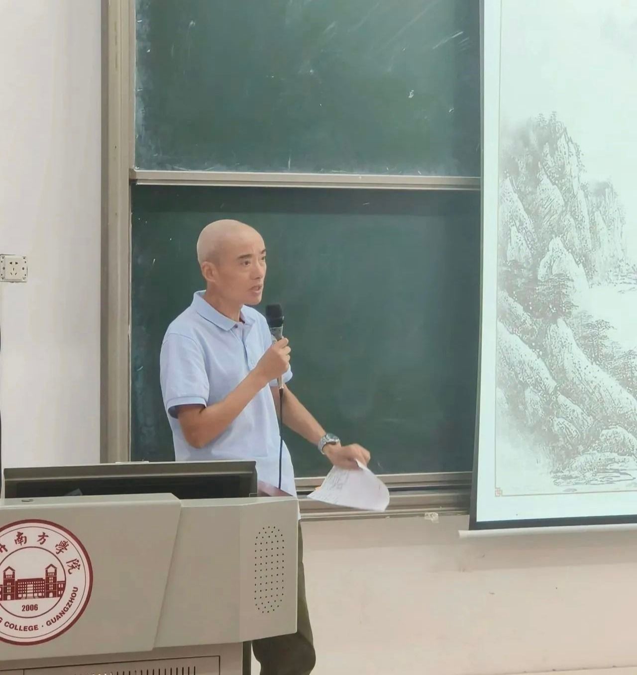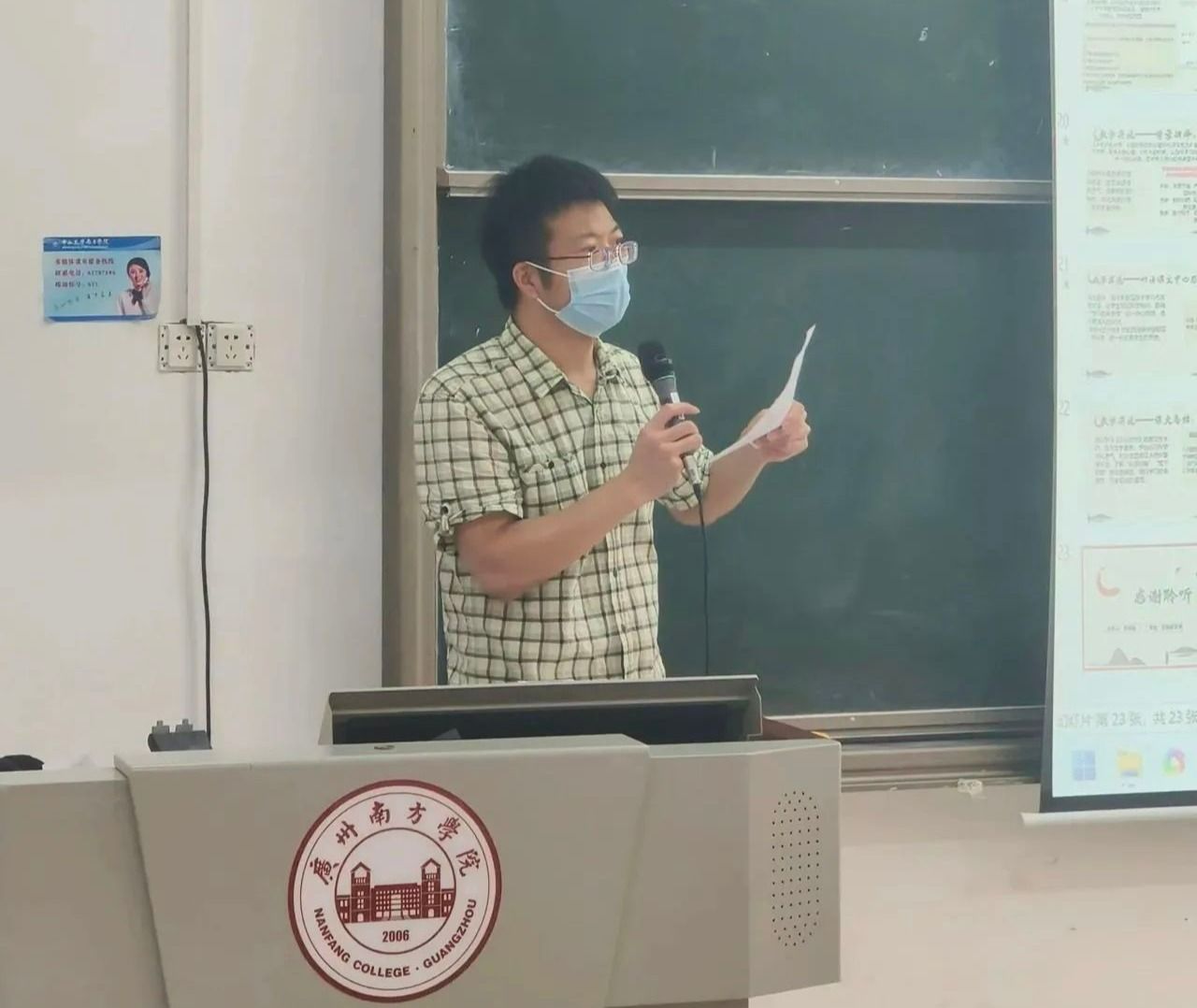 陶成涛老师作中场点评。他首先肯定前九位选手的准备,说课内容都很充分;同时指出选手们的课件重点应多放在课本内容上,希望选手们在说课的同时,以真正的文言文内容做案例,将理念与实践相结合。