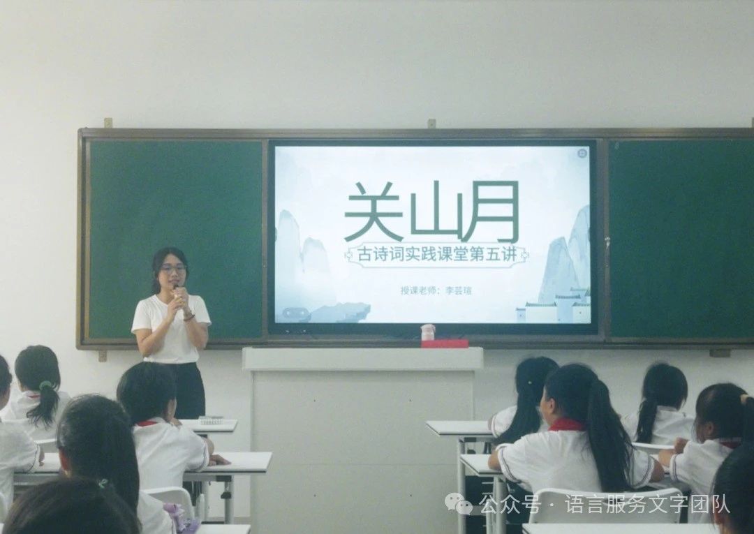 课堂的尾声,小李老师通过答题的方式帮助同学们熟悉理解本首诗词的内容及意义,随后,播放小视频向同学们展示《关山月》的情景动画。一颦一笑间,时间也在悄无声息地流逝。本次的古诗词课堂在愉快轻松的氛围中结束。