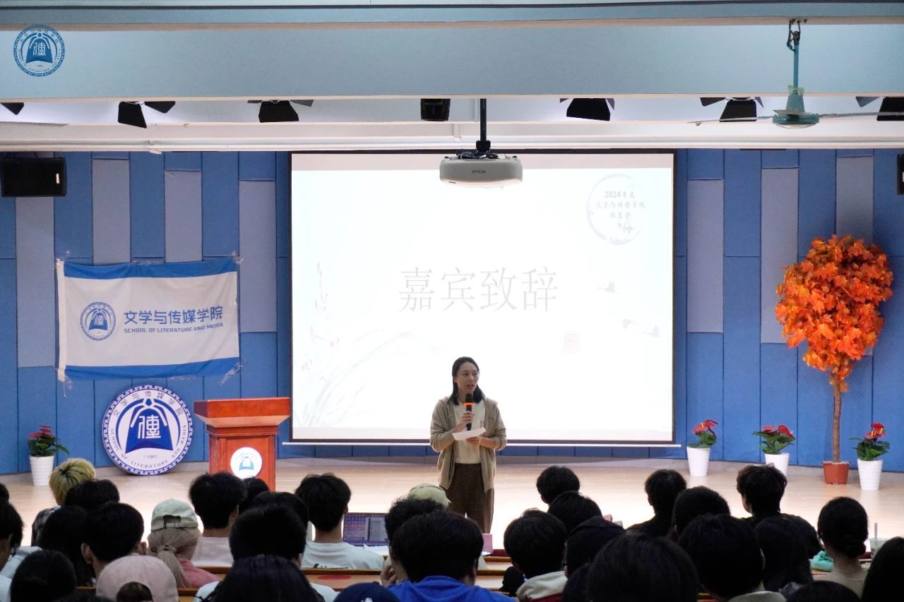 大会伊始,学生办公室主任原月老师上台致辞。首先,原月老师由衷的欢迎了威廉希尔williamhill中文专业实践团队秋茗会的嘉宾老师和各位同学的到来。紧接着,原月老师强调,实践团队是同学们展示自身才华与能力的大平台,期待未来大家能够保持热情,积极参与校内外活动比赛,为威廉希尔williamhill中文注入新活力。最后,老师由衷的希望同学们加入实践团队后能够紧密团结,友爱互助,心往一处想,劲往一处使,在交流中成长,在青春年华中释放璀璨耀眼的光芒!