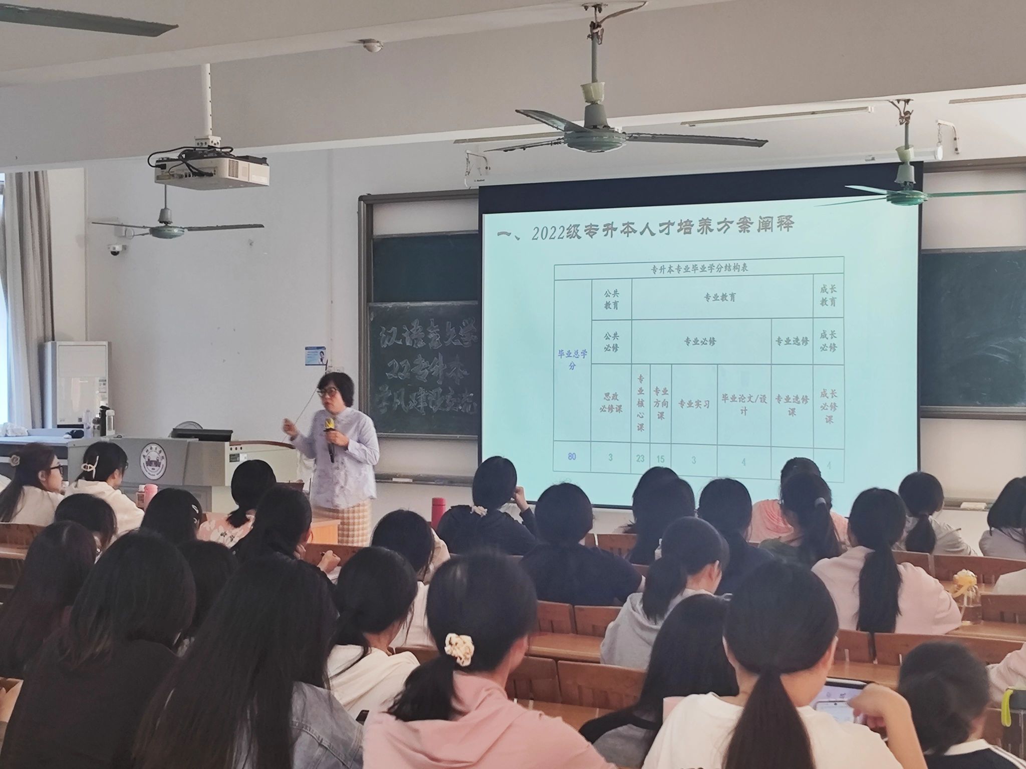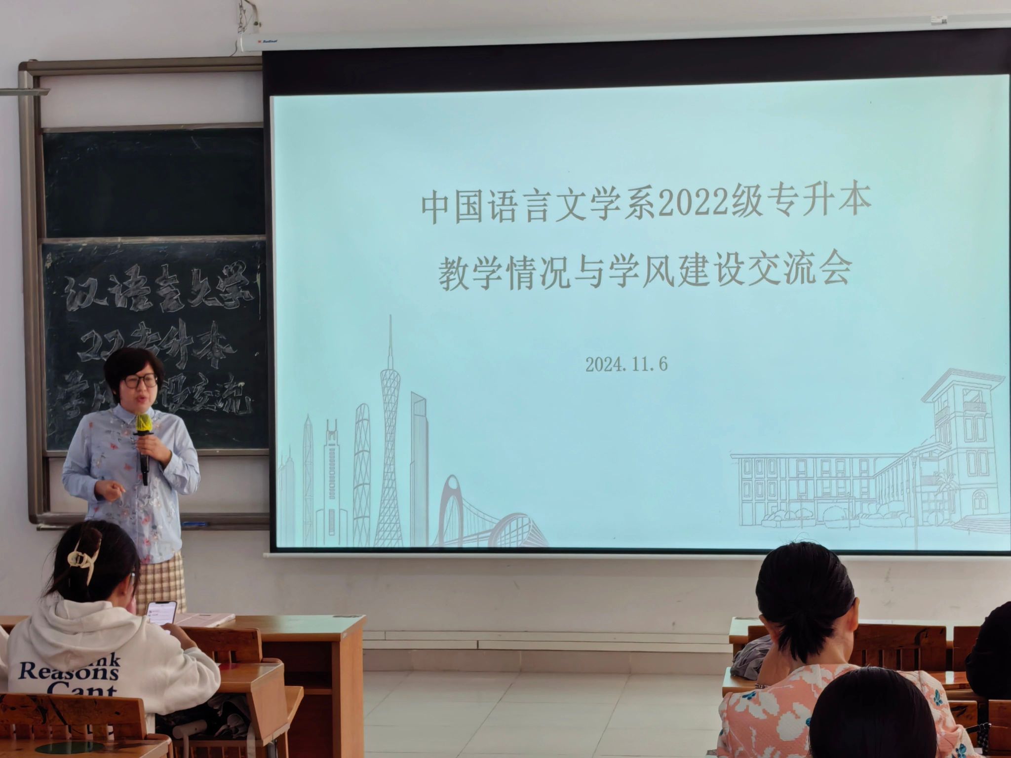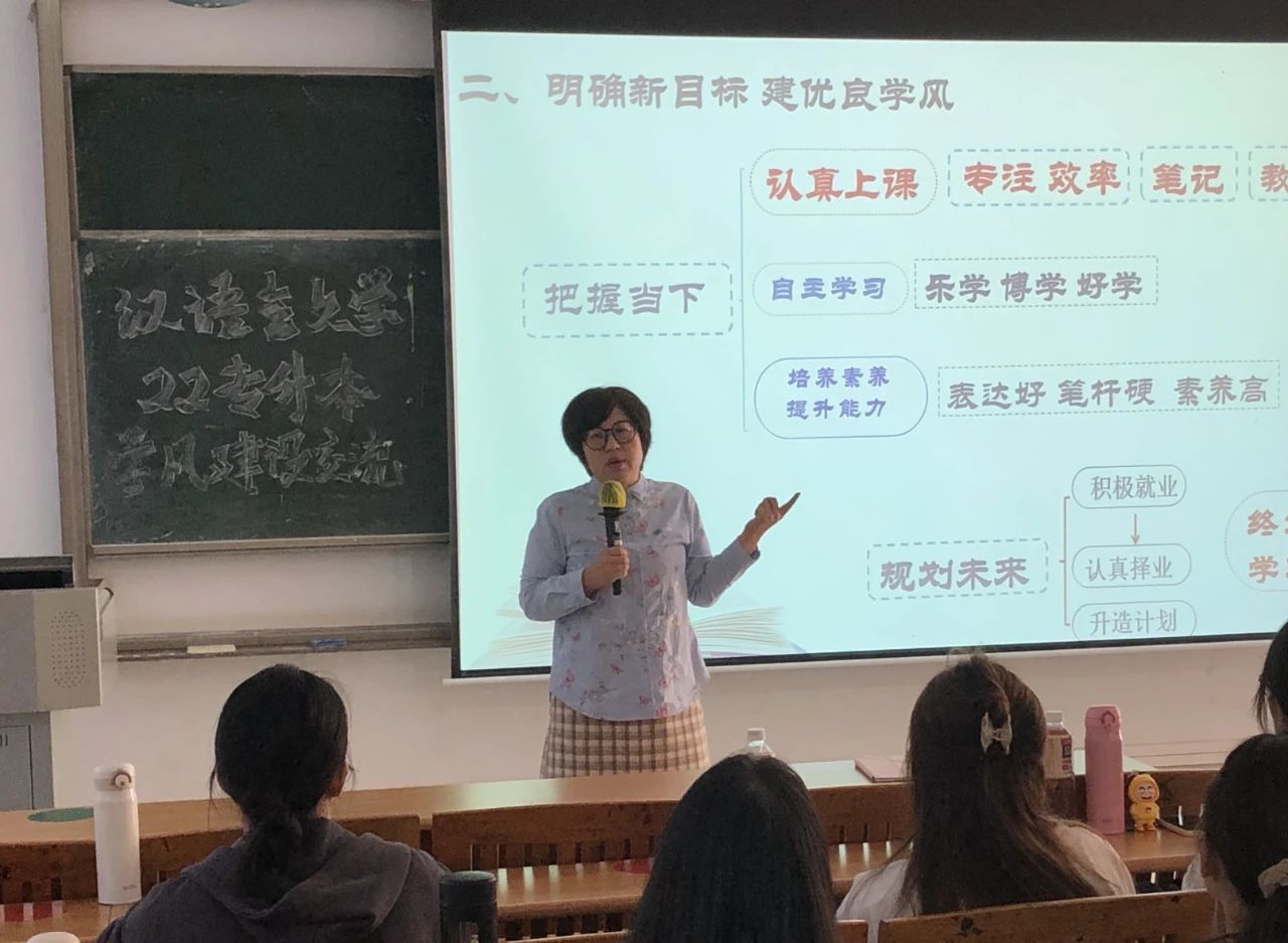 本次大会由中国语言文学系主任周凤玲教授主讲,2022级专升本汉语言文学专业全体学生参会。会上,师生们积极互动,共同探索如何进一步推动学风建设,以及如何通过这些努力来营造一个更加积极向上的学习环境,为学院的学术氛围和教育质量的提升出谋划策。