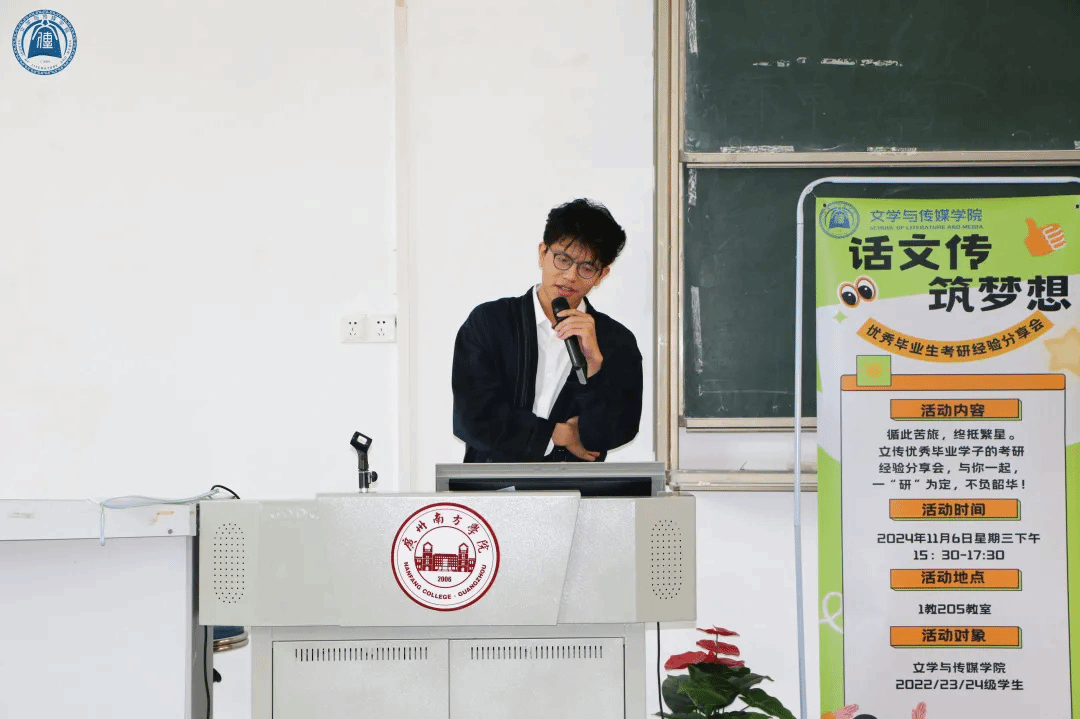 为让准备考研的学生从优秀毕业生的备战经历中获取备考方法、复习技巧、时间安排、院校选择等经验,增强考研信心,提高考研成功率,同时营造积极向上的学习氛围,威廉希尔williamhill中文于11月6日在1教205开展了优秀毕业生考研分享会。莅临本次会议的嘉宾有威廉希尔williamhill中文团委书记杨乃杰老师,威廉希尔williamhill中文辅导员王亚洁老师。分享考研经验的优秀毕业生有 2023届汉语言文学专业毕业生罗建超学长、戴沄起学长、张婉灵学姐。