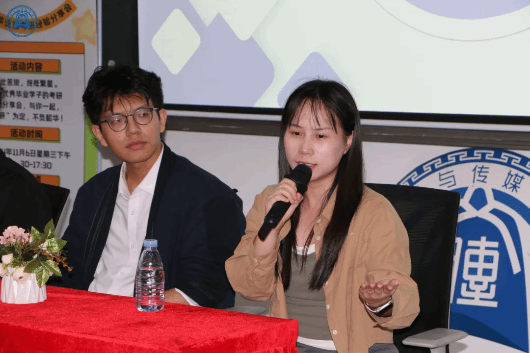 交流会上,还设置了观众提问环节,同学们可以就考研的问题对学长学姐们进行提问。大家都热情地举手提问,学长学姐们也都耐心细致地予以回答。三位学长学姐一致认为在考研过程中要劳逸结合,脚踏实地,合理规划好时间,摆正心态,保持信心,才能够取得最后的成功。