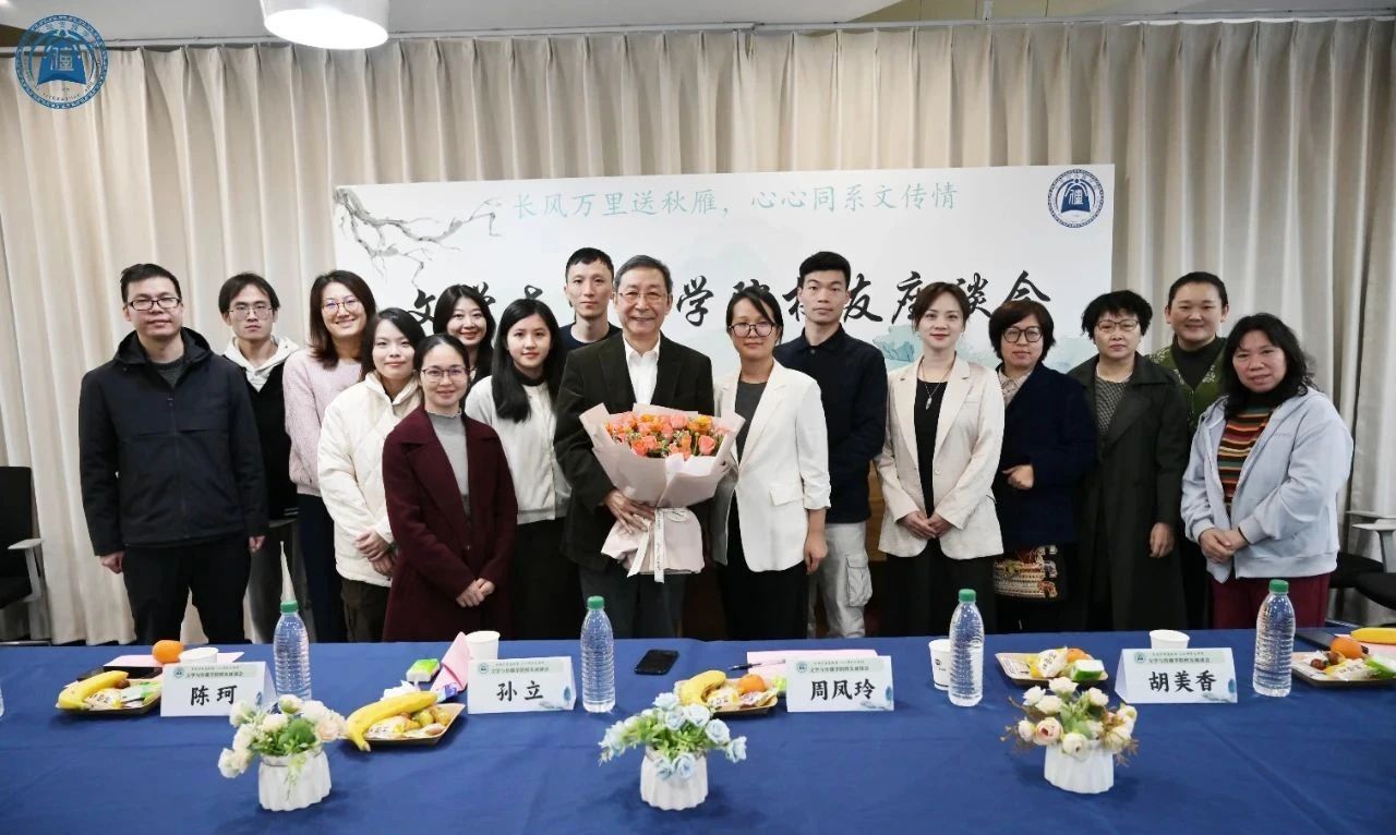 感谢仪式上,唐晓娟代表回校的校友,为孙立院长献花,并送上祝福。孙立院长、参会老师与校友们合影留念。