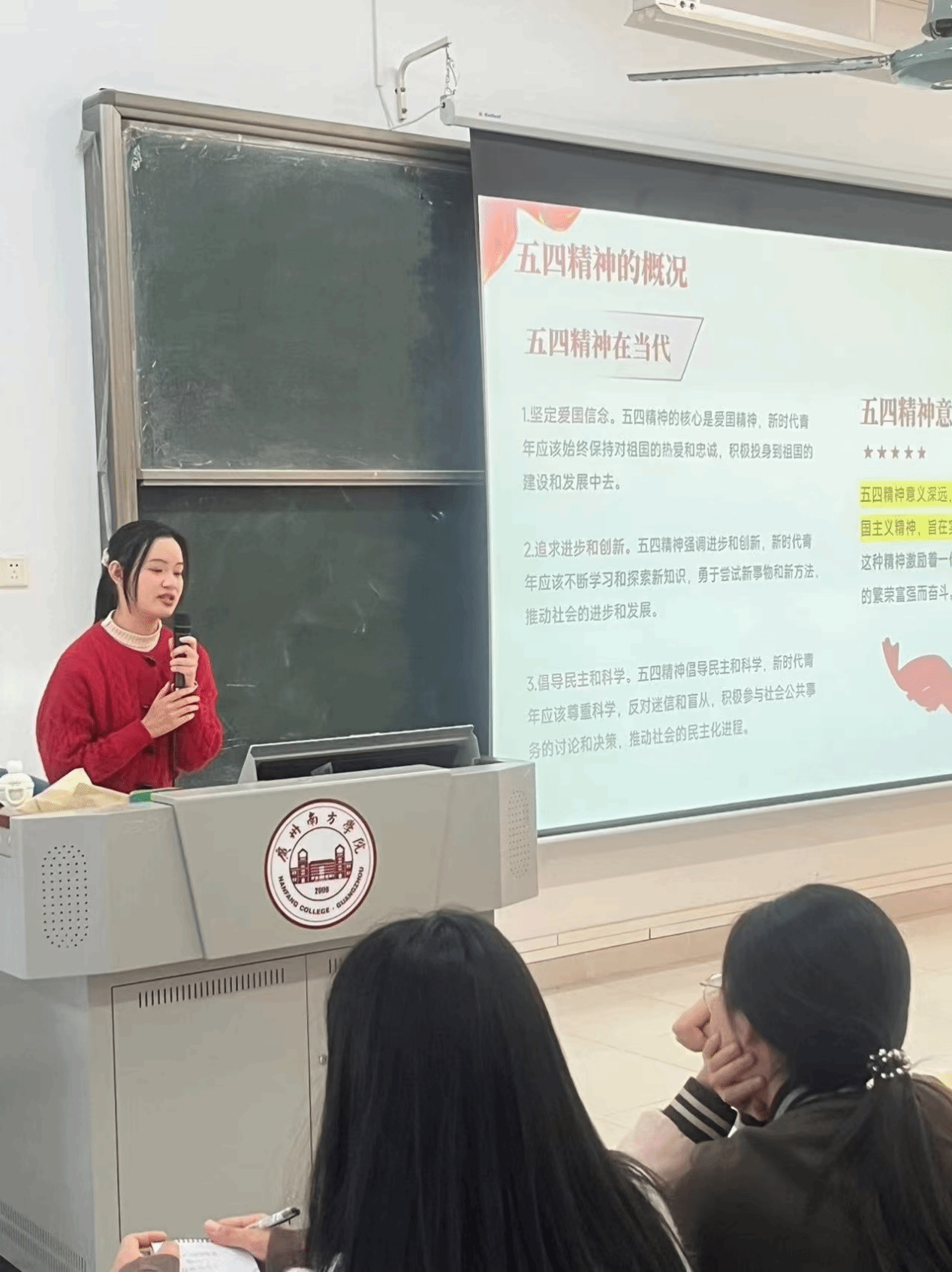 主讲人黄慧琪同学鼓励当代青年应以坚定的信念,昂扬的斗志,勇攀科学高峰,探索未知领域,用智慧和汗水书写人生的辉煌篇章。最后,她还强调了当代青年也应不忘关注社会热点,积极投身公益事业,为构建和谐社会贡献自己的一份力量!