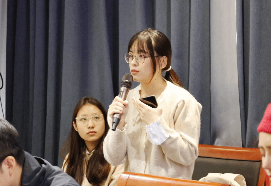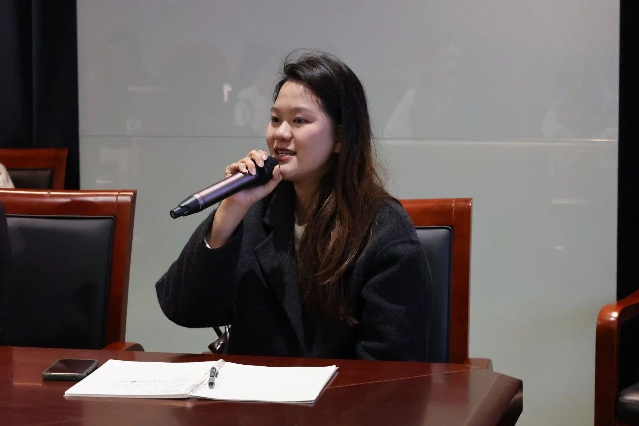会议的尾声,2024级网络与新媒体专业吴雪敏同学积极分享了参与本次座谈会的感受。大学是一个可以让人进行多元化尝试的地方,在专业课程中学习到的知识,在社会实践中都能得以体现。