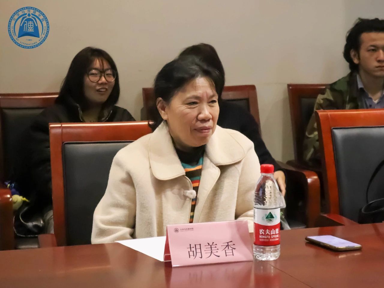 胡美香老师表达了她对学生们的殷切期望。她指出,在当今跨文化传播的时代背景下,传媒人肩负着传播大众文化的重要使命,更有责任助力中华民族的伟大复兴。她希望大家能在竞争激烈的环境中脱颖而出,积极传播中华文化,展现作为传媒人的担当与作为,并勉励同学们向卢哲颢校友学习,敢于走出去,成就自我价值和社会价值。