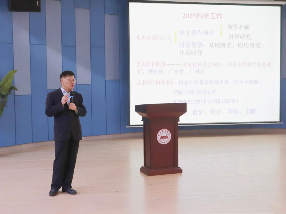 院长助理陈希全面回顾学院2024年度论文项目与著作出版成果,并重点部署2025年国家社科、国家自然科学与教育部项目申报工作,强调了科研对教师个人成长、成果积累以及职称、待遇的重要影响。同时强调学校高度重视评估与硕士点建设,并号召教师提前准备材料,完善申请书,以期取得更多突破与发展,为未来进一步提高科研实力奠定坚实基础。
