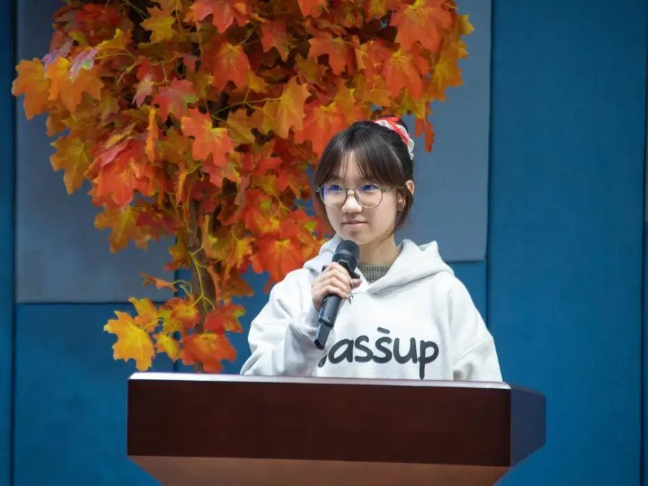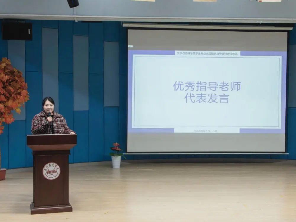 金唛司仪队负责人廖阳琳作为实践团队代表发言。她首先感谢了学院领导和指导老师的支持,随后分享了作为负责人的经验感悟并介绍了队训、团队取得的成绩,以及“老带新”制度对团队的积极影响,并特别提及指导老师在筹备文传晚会中的助力。廖阳琳表示,未来金唛司仪队将继续为学院文化建设贡献力量,这不仅彰显了团队的团队精神,也为团队的未来发展奠定了坚实的基础。