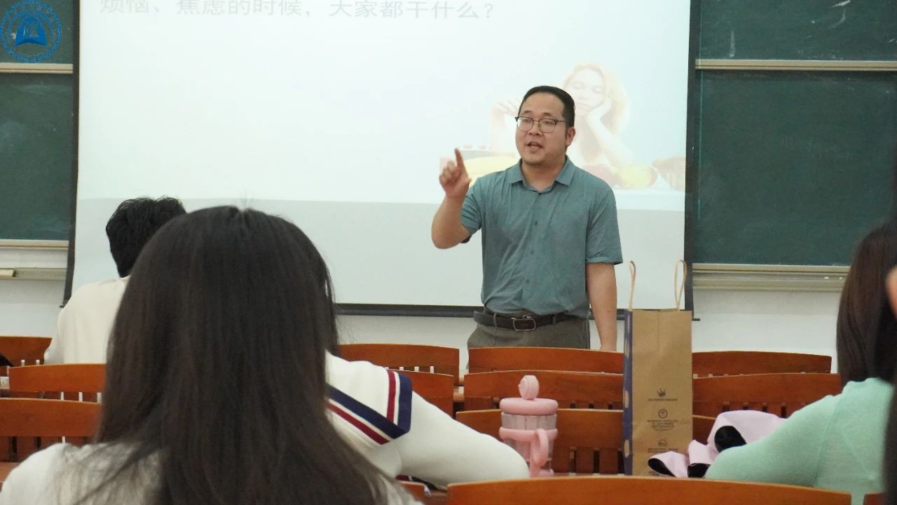 讲座伊始,张老师以“烦恼、焦虑时你会做什么?”为切入点,与同学们展开互动。同学们分享"打篮球""骑自行车"等解压方式,其中"打沙袋"的回答引发共鸣。张老师借此揭示:对抗性运动能有效释放攻击性情绪,并强调"压力管理不是消除压力,而是培养与压力共处的智慧"。通过压力与表现的倒U型曲线模型,张老师阐明了压力水平过高或过低都会降低表现效能,因此需要寻求动态平衡。