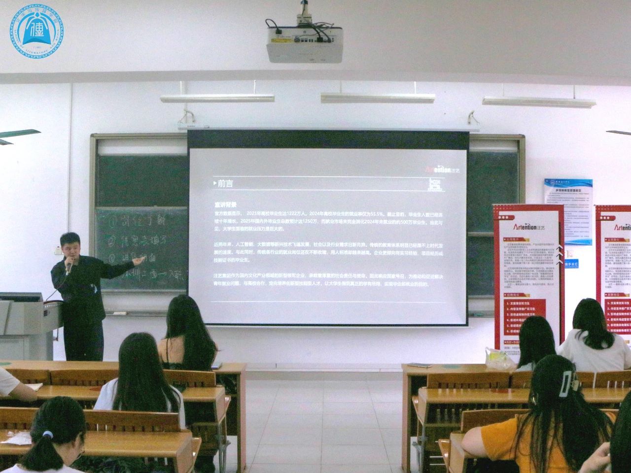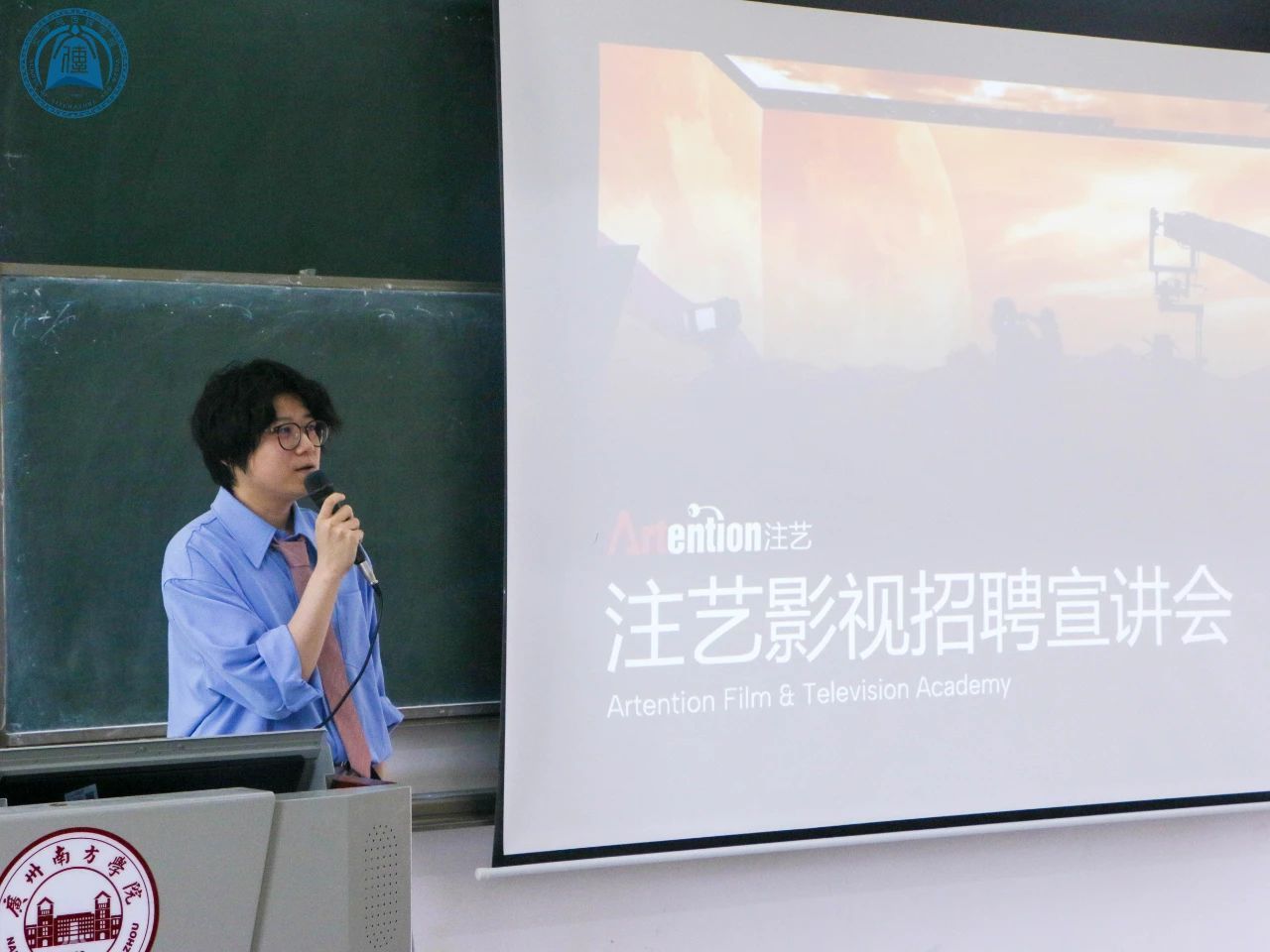 宣讲会伊始,王天一先生从多方面为同学们介绍了深圳注艺集团。他通过展示近期与最高人民法院、最高人民检察院合作推出的普法节目,直观地呈现了深圳注艺集团的发展潜力以及成熟的制作体系,充分体现了深圳注艺集团的实力。