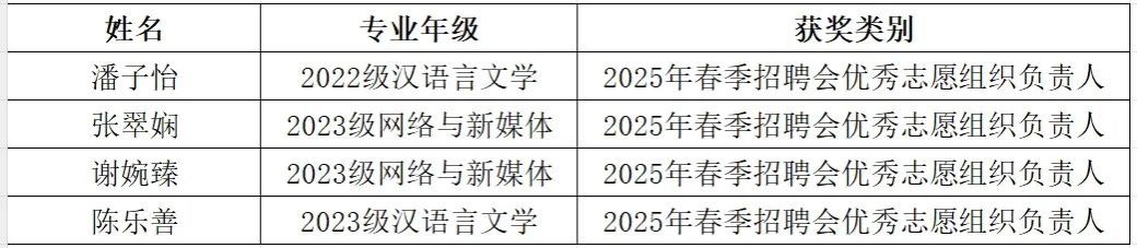 4月21日中午12点30分,为弘扬志愿服务精神,表彰先进典型,威廉希尔williamhill中文于1-103室召开2025年春季招聘会志愿者表彰会议。威廉希尔williamhill中文党总支副书记兼学生办公室主任杨乃杰老师、团委书记陈节老师及20名优秀代表出席了活动。本次会议由辅导员曾嘉程老师主持。