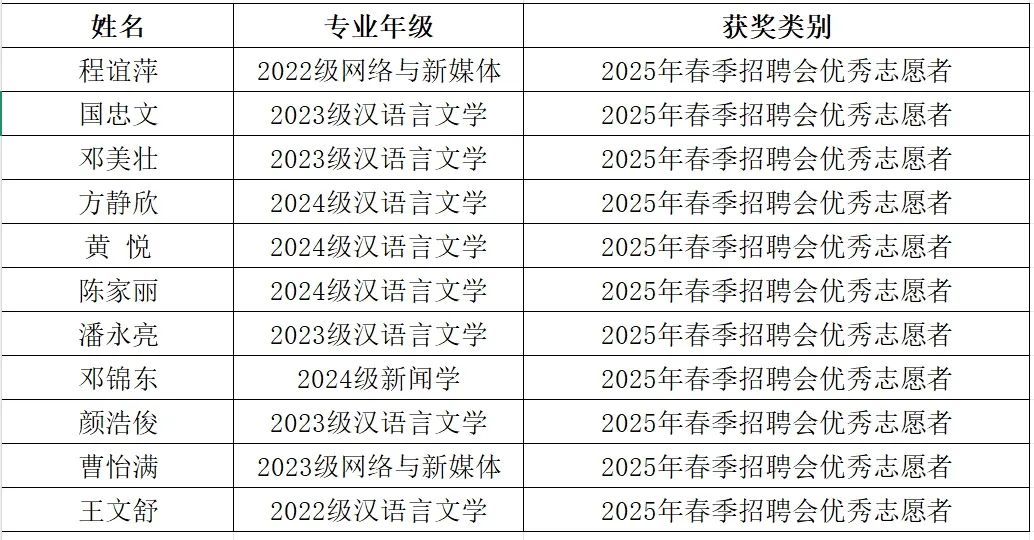 表彰大会为20名表现突出的志愿者颁发荣誉证书,并号召文传学子以榜样为引领,积极参与到志愿实践活动当中,以下是表彰名单: