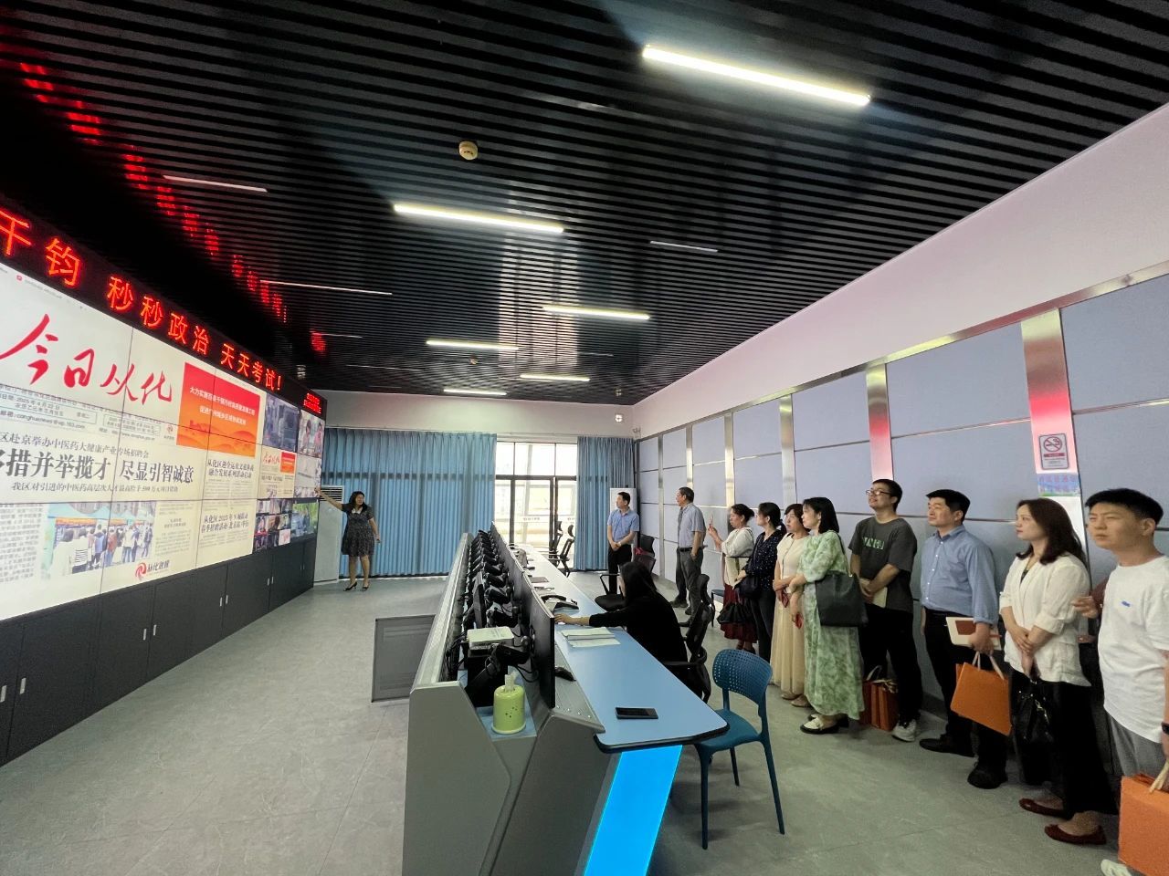 活动伊始,学院教师代表参观了演播厅、电台直播间、安全播出调度指挥中心以及新媒体部,了解融媒体中心各区域的功能和日常运作情况。