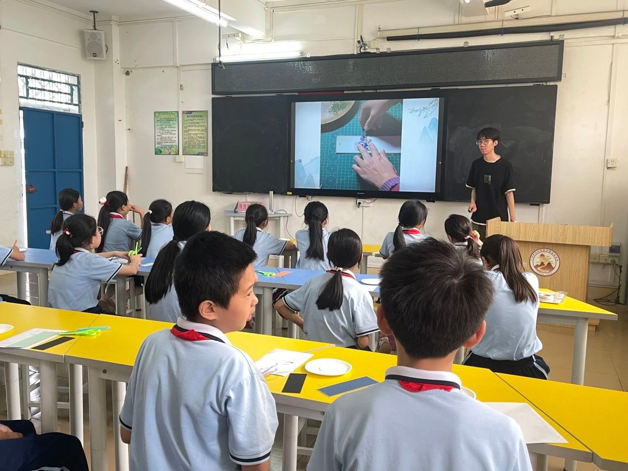 课堂伊始,小廖老师以“看到花会联想到什么?”为引,向同学们介绍了押花的发展历史。这一提问瞬间点燃了同学们的好奇心和探索欲。随后,小廖老师介绍了岭南的押花,它以植物为媒介,将人与自然、与生活的紧密联系呈现在世人面前。