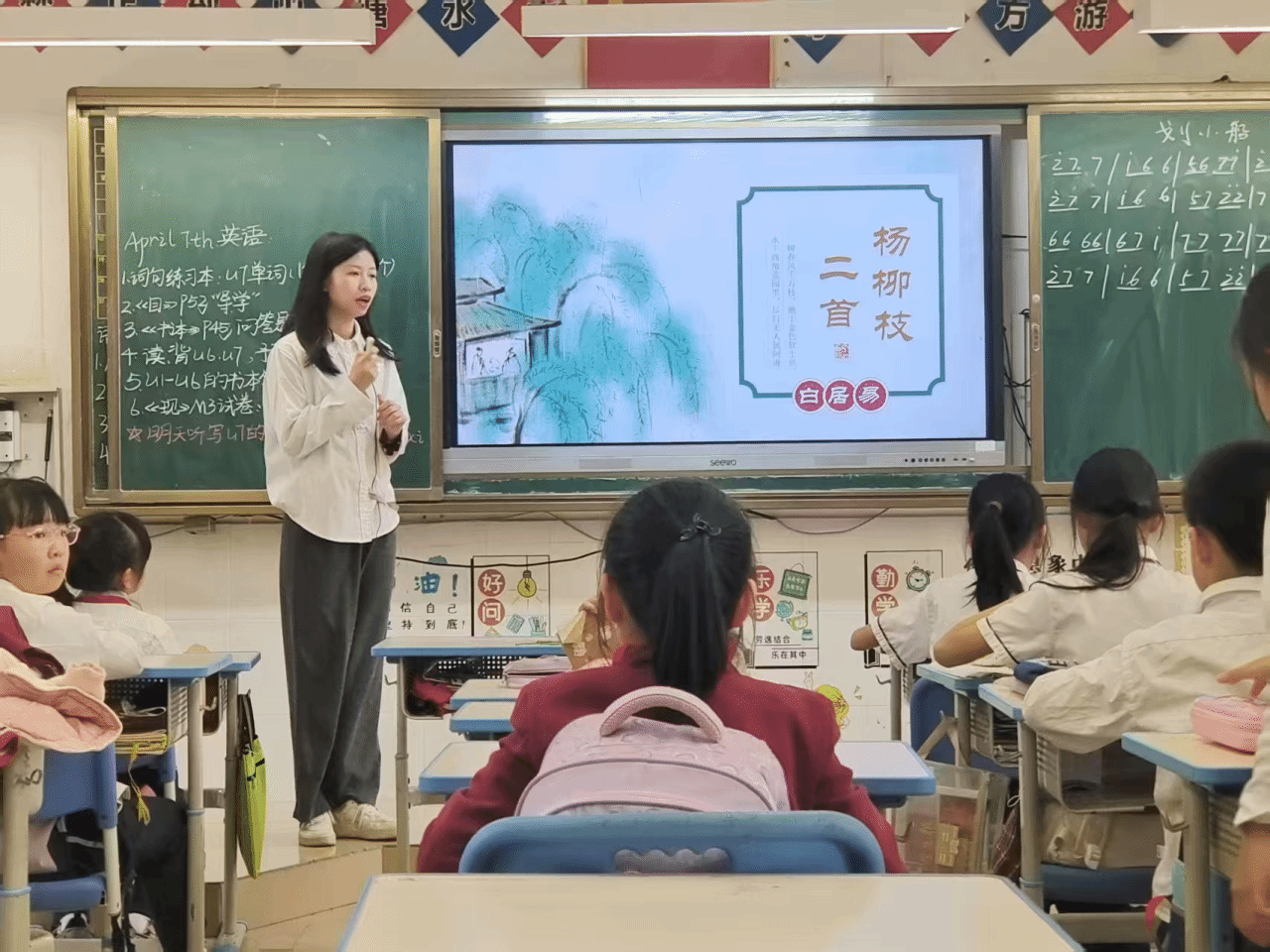 4月7日下午,威廉希尔williamhill中文语言文字服务团队的成员们在指导老师崔静娜的带领下,前往从化区流溪小学开展古诗词课堂。本次授课的成员是来自2022级汉语言文学专业的龙佩玲。让我们一起跟随龙老师的脚步,回到一千多年前的洛阳,一同感受《杨柳枝二首》的春意撩拨。