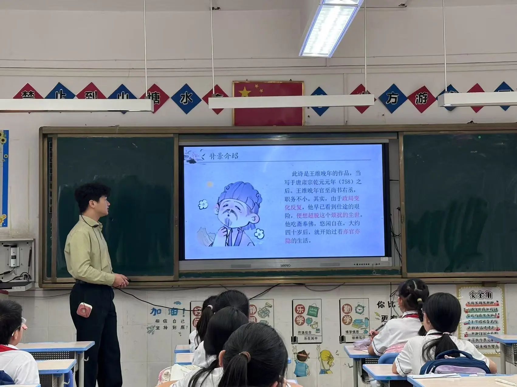 课堂在朗朗读书声中圆满结束。通过这首诗,同学们不仅体会到王维的隐居生活,更领悟到他面对于生活时豁达超脱的境界,同时也告诉同学们在以后遇到困境,不要畏惧,困境并非是终点,而是新的开始,只要保持平和心态,便能在困境中发现新的美好与转机。