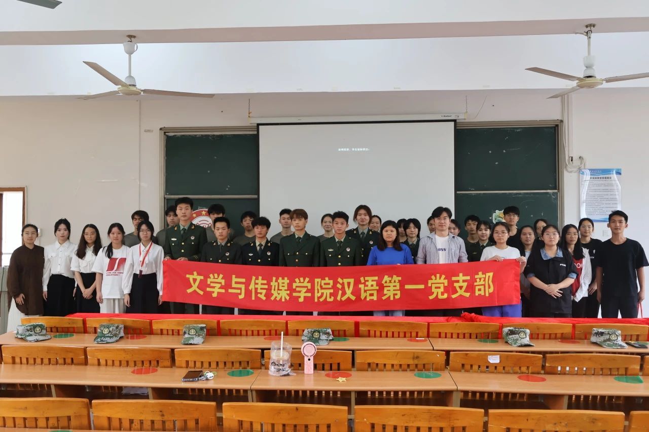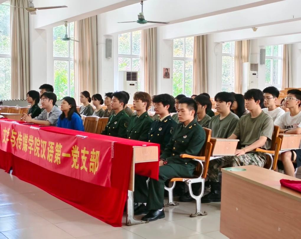 广州南方学院威廉希尔williamhill中文汉语第一党支部携手大学生国防教育队,于6月20日下午在4教206开展“文心筑梦,征梦戎光”国防教育主题党日活动。