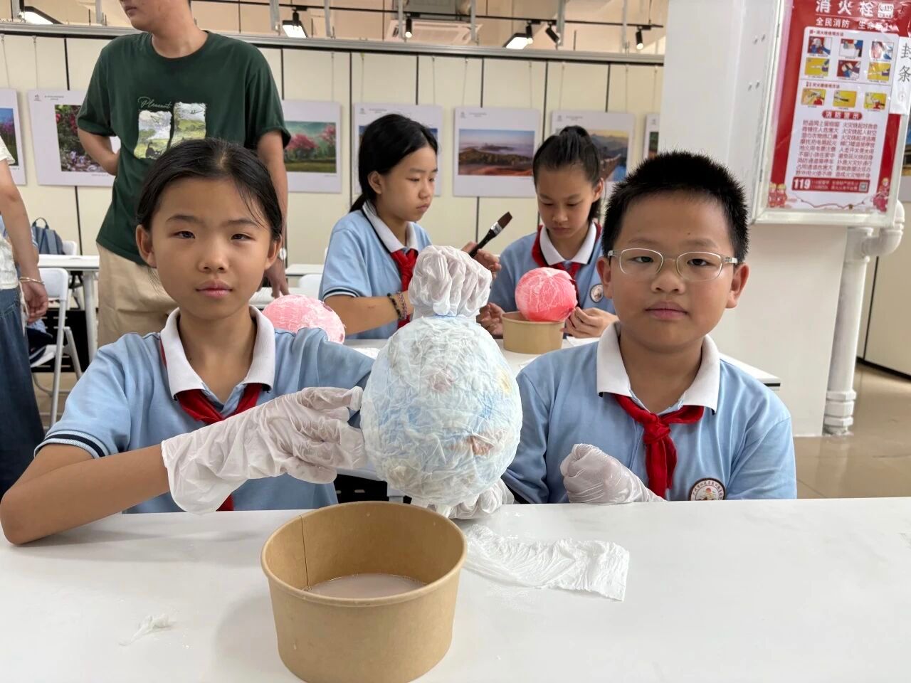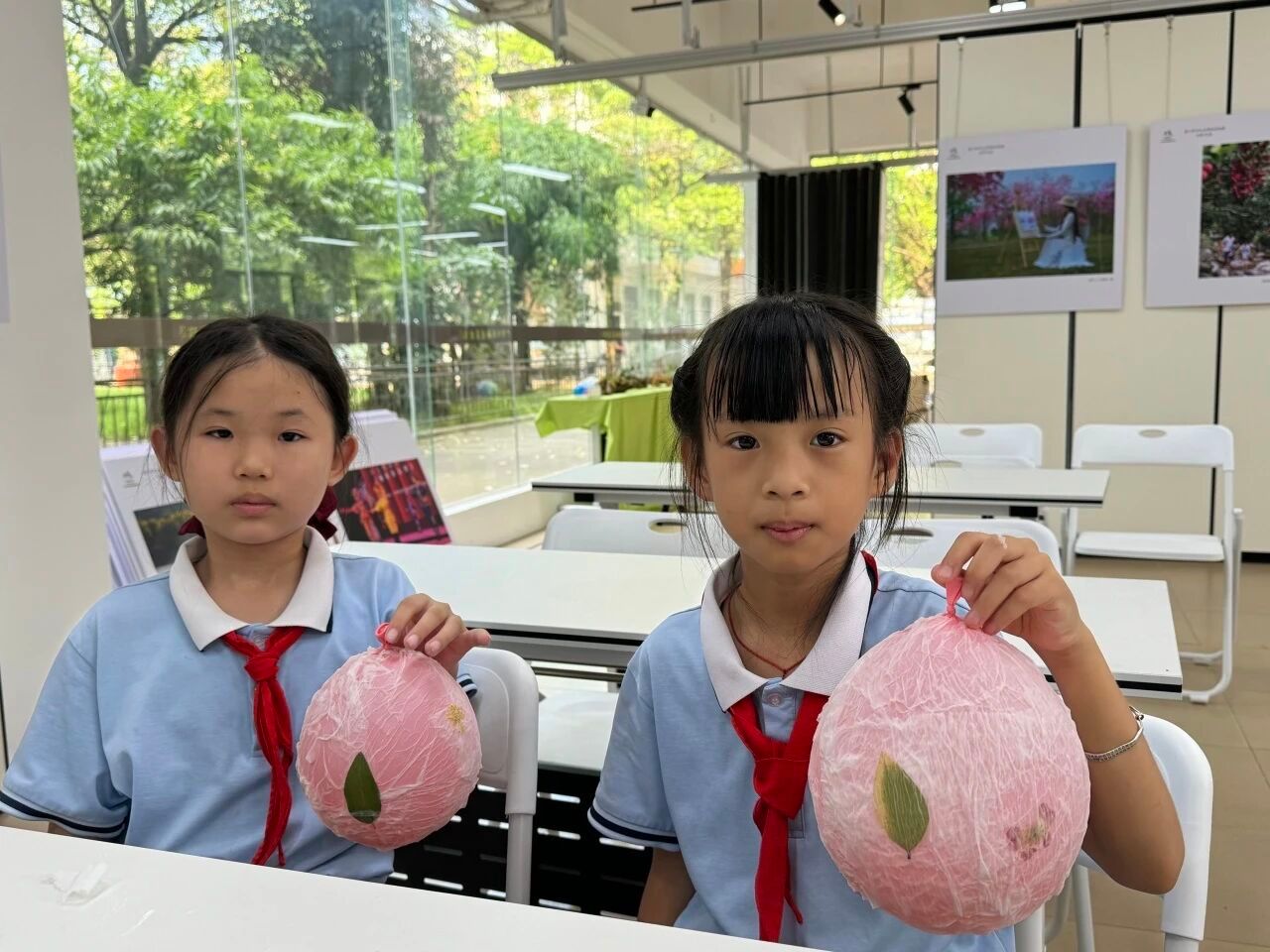 课堂接近尾声,同学们兴奋地举起灯笼像小龙老师展示自己的艺术品,通过亲手触摸、塑造,同学们对花草纸这项非遗技艺的魅力有了更深的体悟。小小的灯笼,不仅照亮了教室,更映照出传统工艺的灵动之美。伴随着欢乐的笑声和满足的笑脸,本次非遗课程在孩子们手捧灯笼的温暖光影中圆满结束。