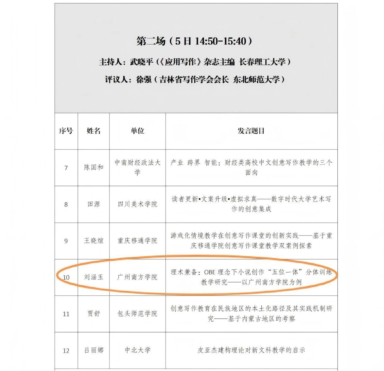 刘涵玉老师发言场次