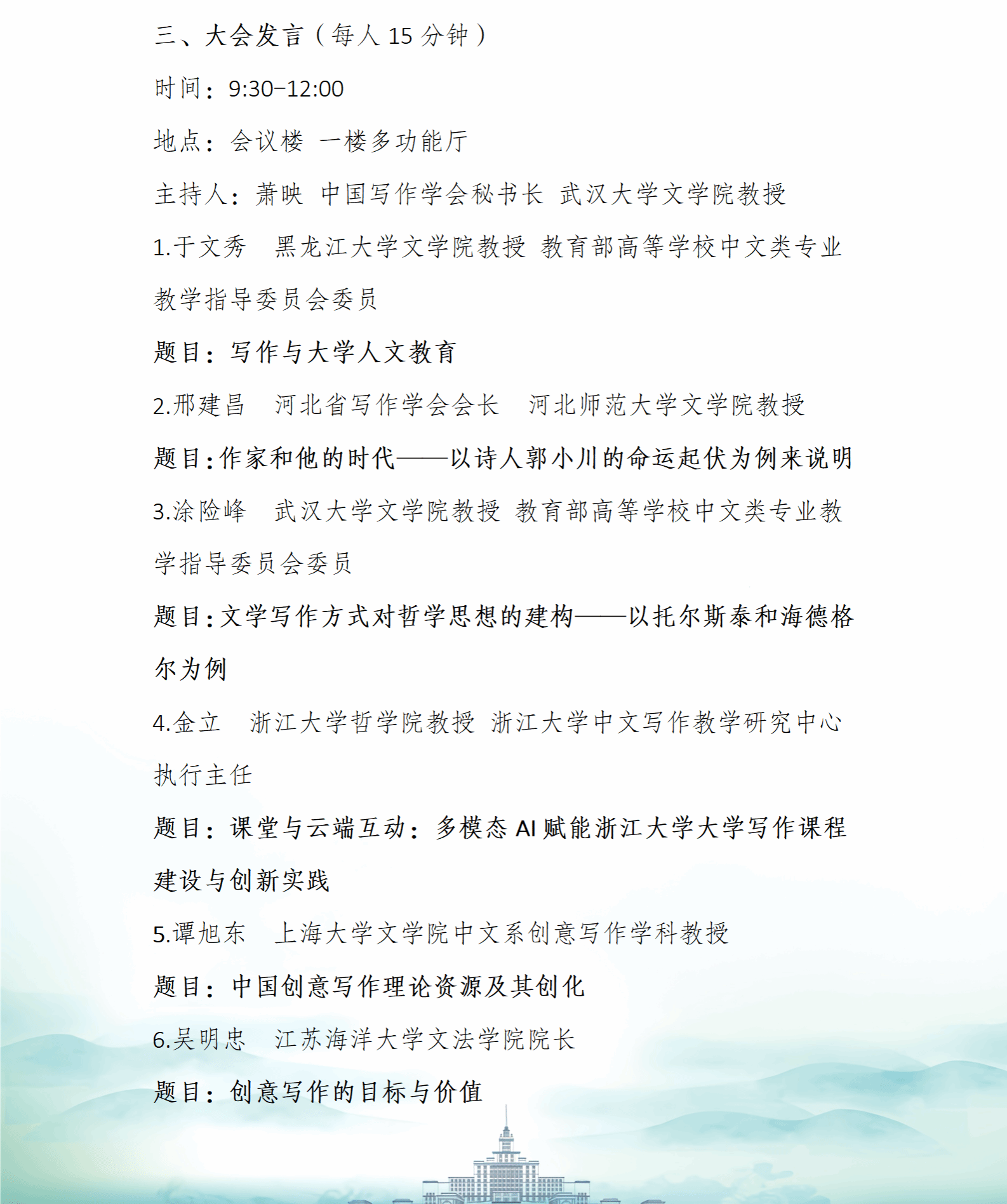 大会发言环节议程