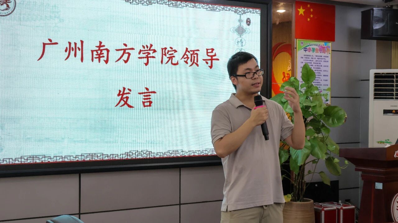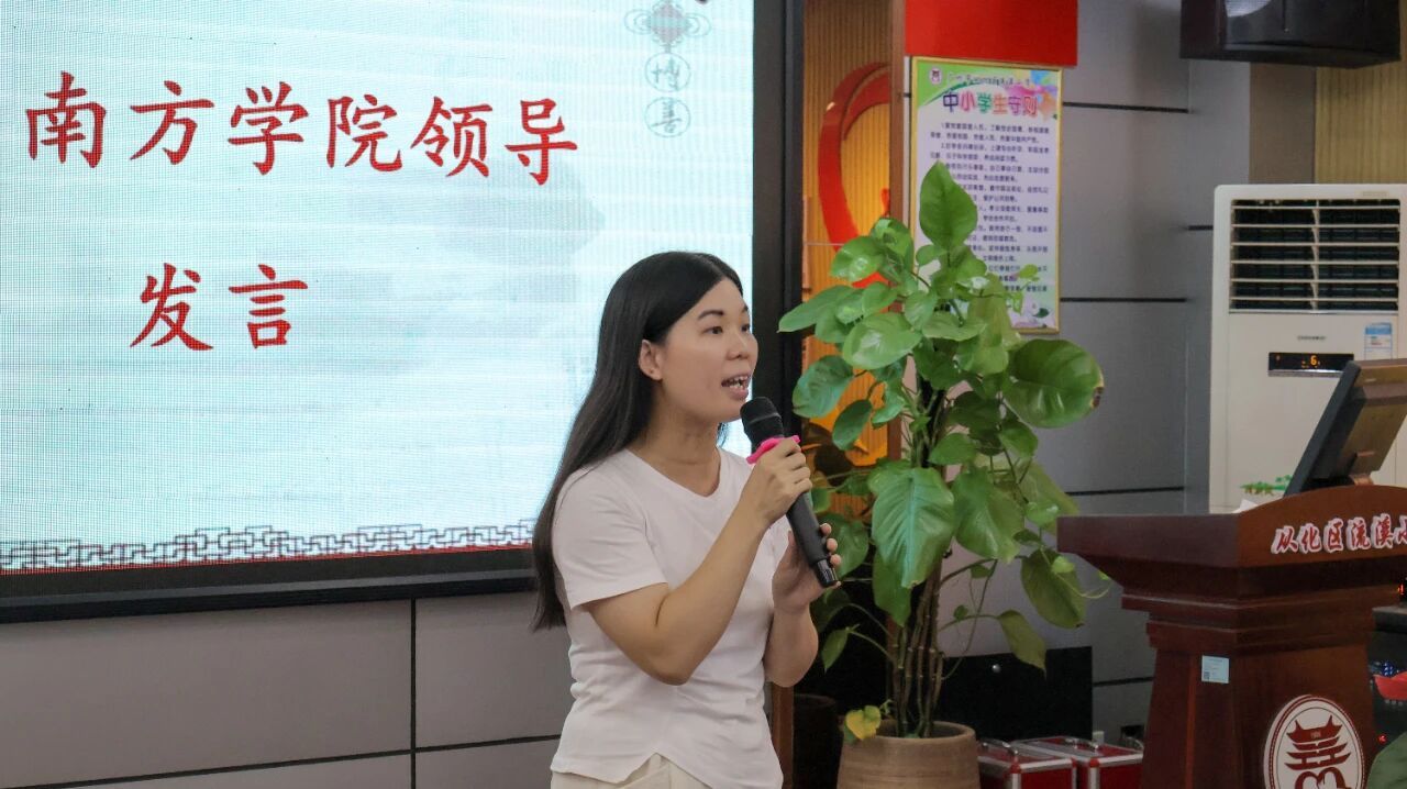 副院长周凤玲教授则进一步介绍了实践基地的建设成果。她提到,自2023年双方结缘以来,基地从最初的甲骨文特色课堂,逐步拓展到古诗词、非遗文化课堂,并在2024年获批省级中华优秀语言文化传承创新大学生社会实践教学基地,今年获批广州南方学院校外优秀实践基地。从最初1名指导教师8名同学,到如今10余名指导教师、50余名学生参与的语言文字服务团队,基地的发展正是威廉希尔williamhill中文‘以实践促成长’办学理念的生动体现。”