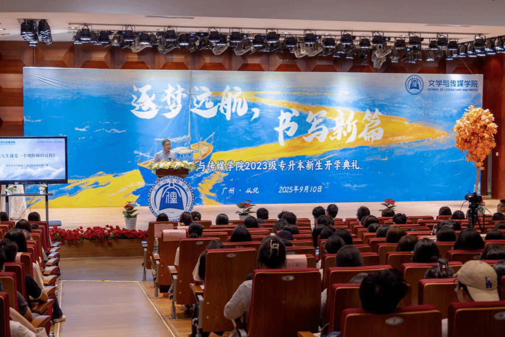 2022级专升本新闻学3班刘紫煊作为优秀学生代表进行发言,为新生们分享专升本的学习经验:一是早作规划,根据考研计划或就业方向夯实基础、主动积累实习经验,借助丰富的课程和老师的指导明确方向;二是培养与专业相关兴趣,以其自身为例,将新闻与RPG游戏结合,自学编程创作游戏,让兴趣发展成独特优势;三是保持良好心态,把学习当成马拉松,注重劳逸结合,在求学路上真诚地做自己。最后刘紫煊同学祝愿大家怀抱理想,在南院度过充实时光。