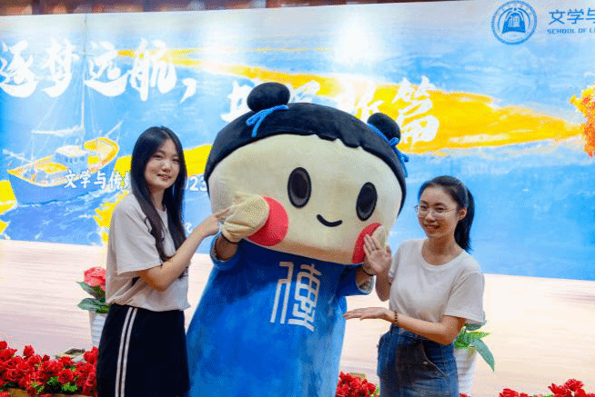 开学典礼现场及学院吉祥物“童童”