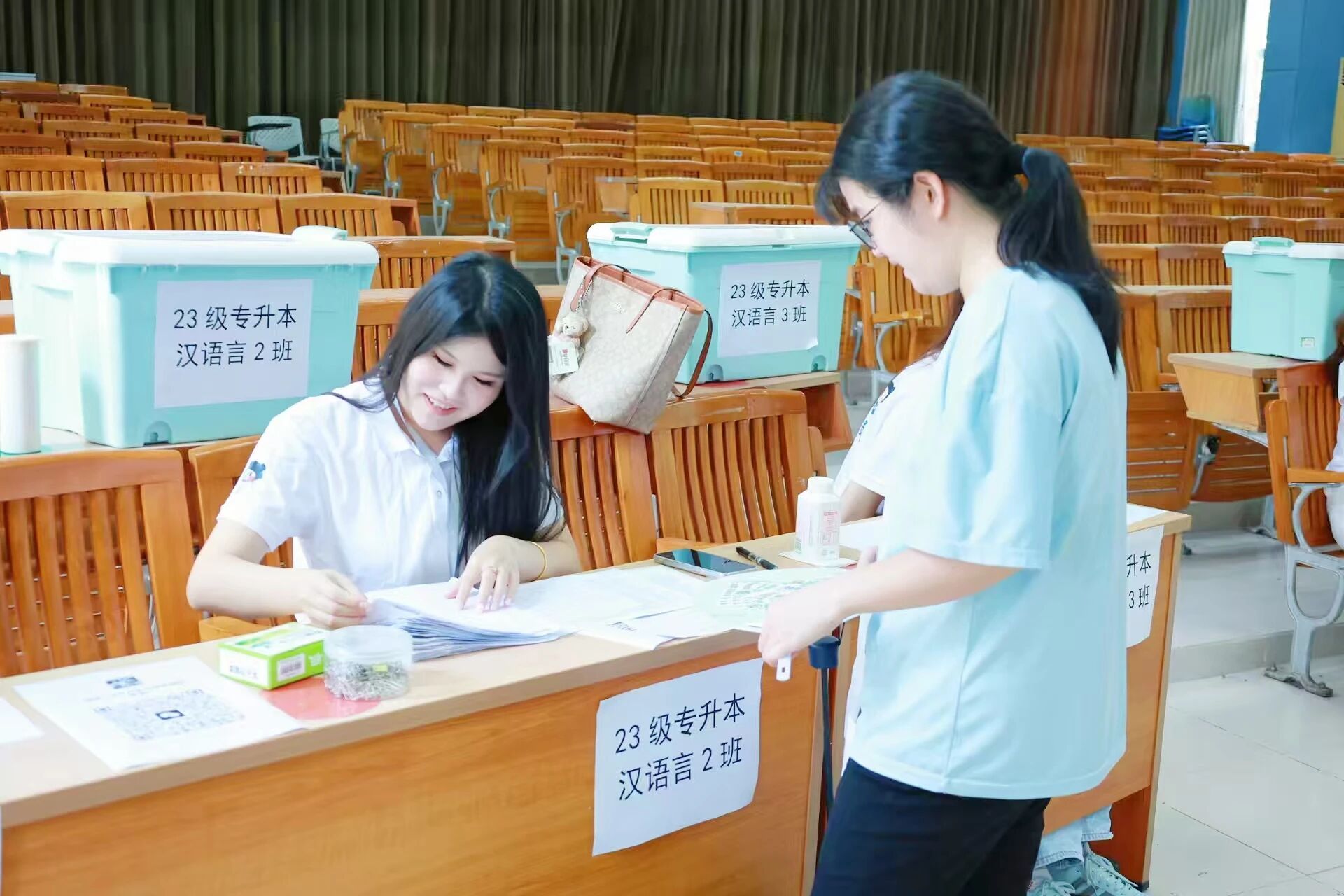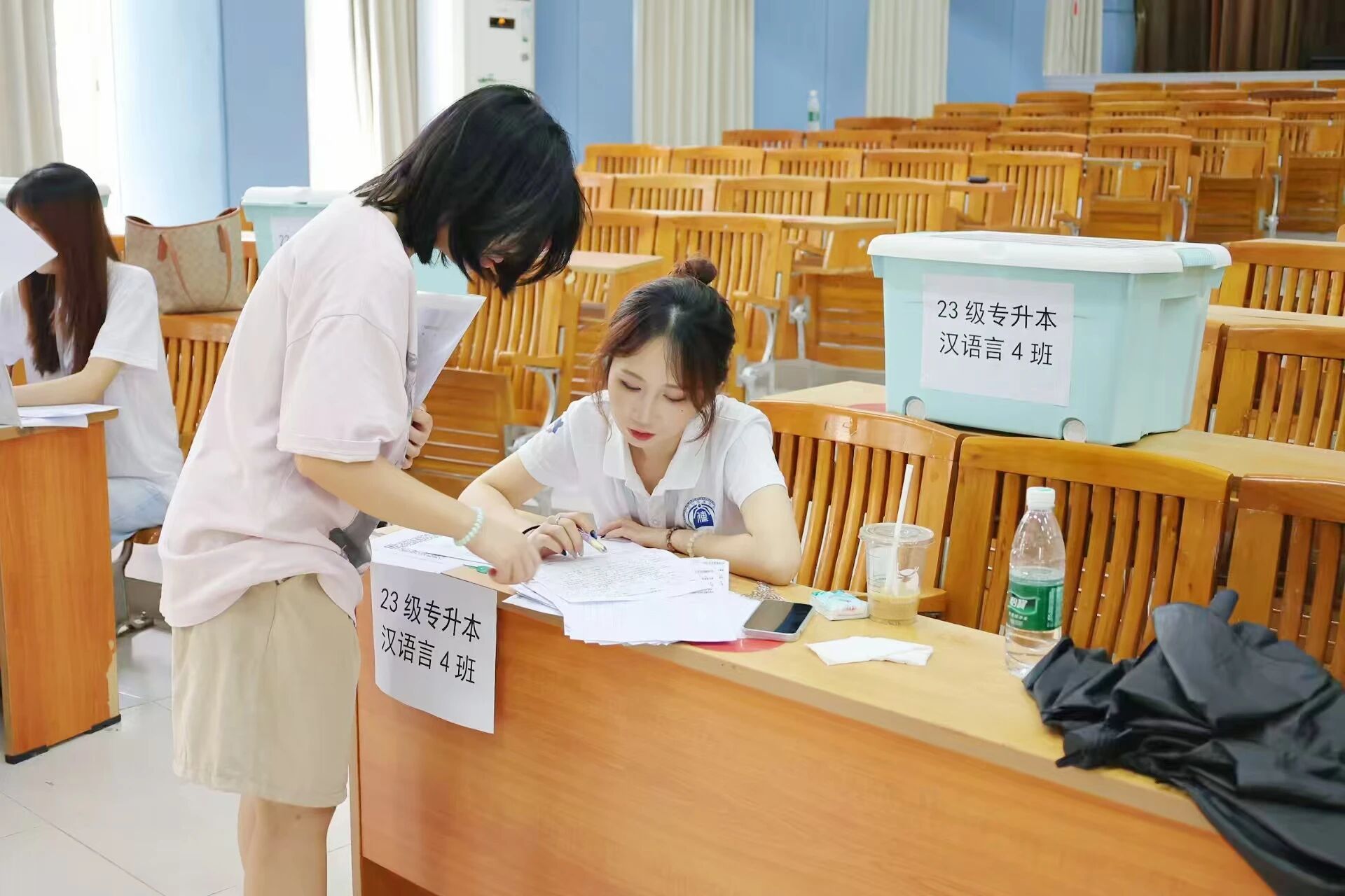 2023级专升本新闻学、网络与新媒体专业辅导员许洋洋老师与新生们亲切交谈