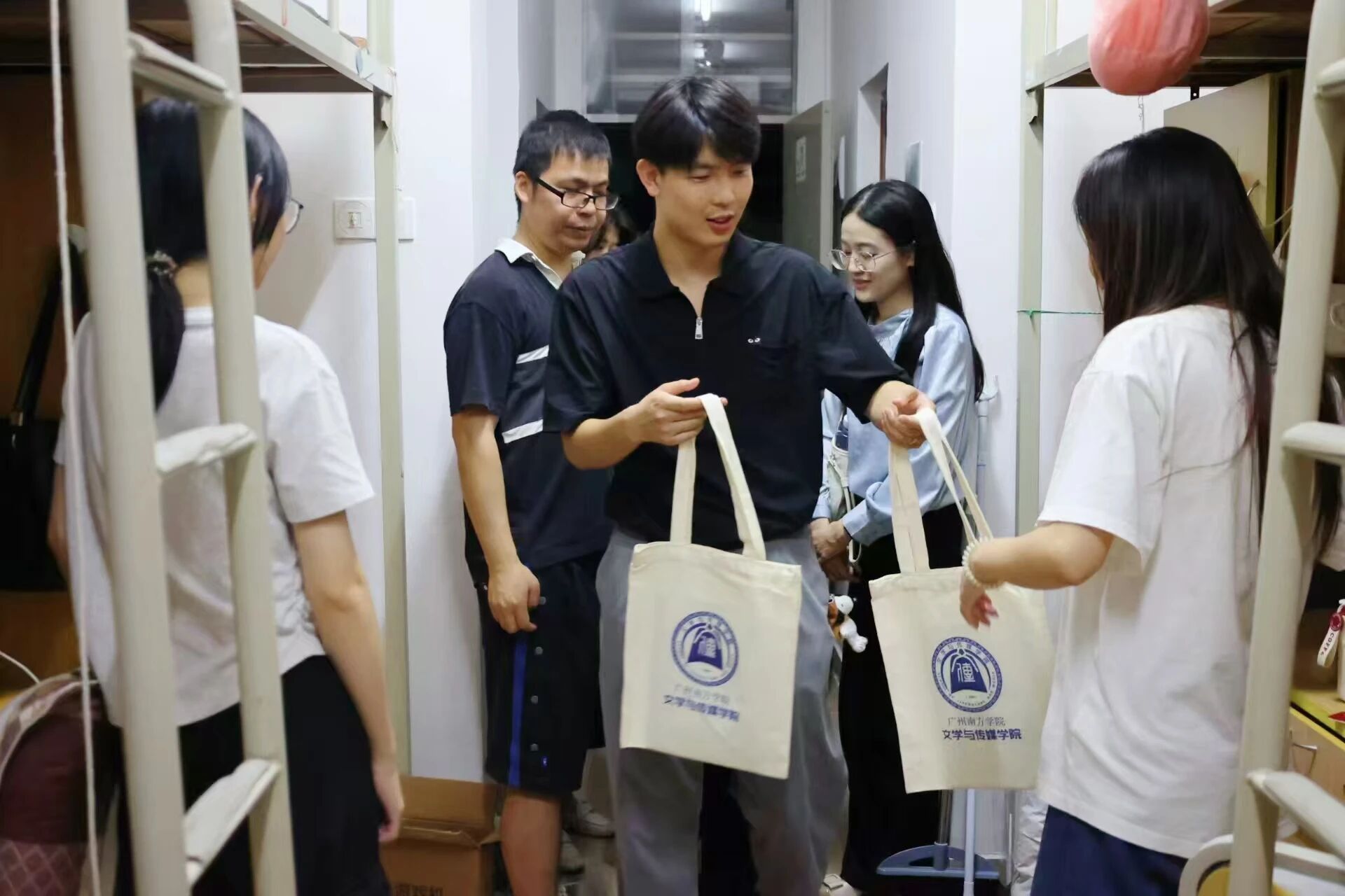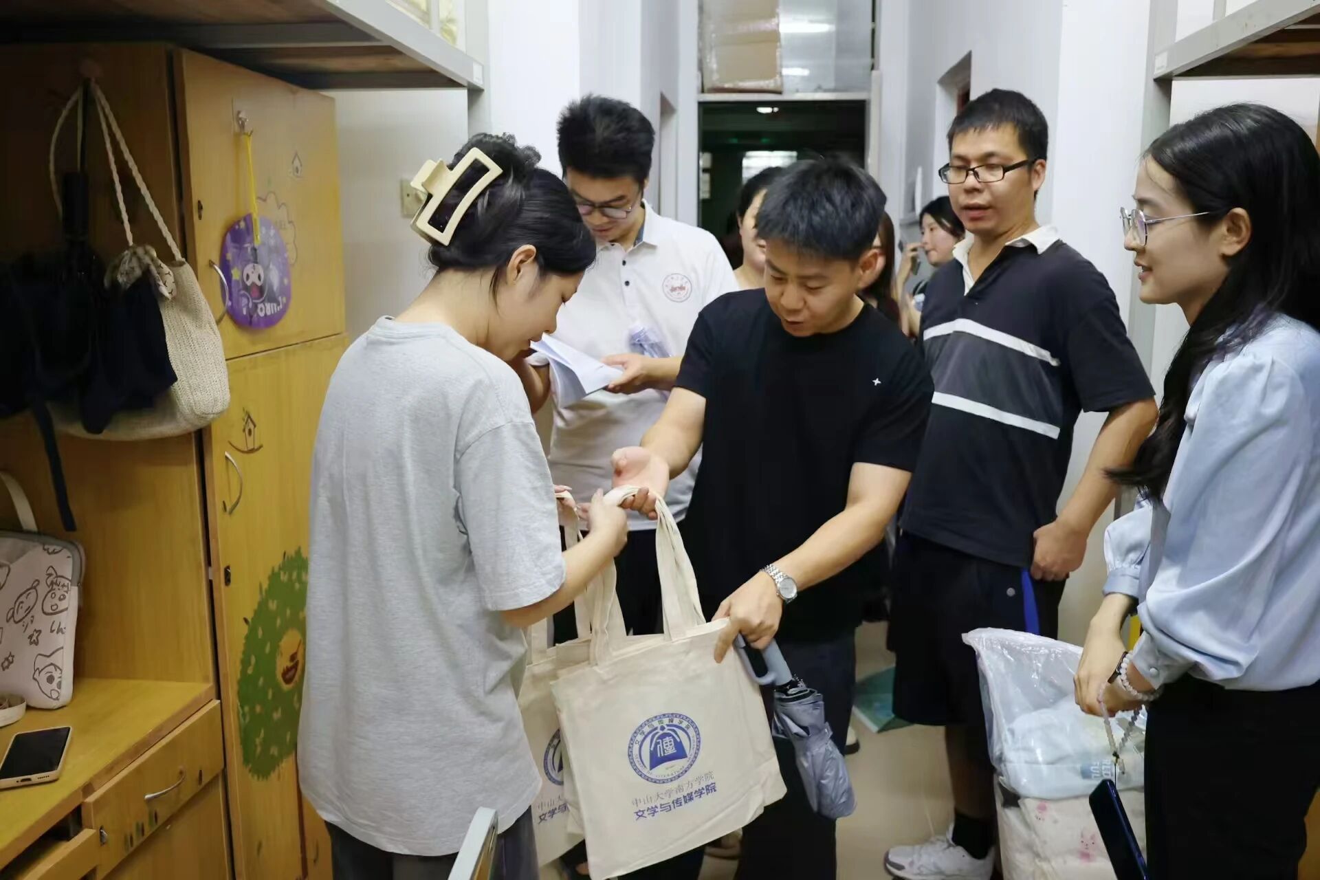 9 月 5 日晚上,在新生们结束了一天的忙碌后,威廉希尔williamhill中文的老师们前往东学楼18号、西学楼10号、东学楼14号开始了他们的宿舍走访活动,为新生们送去温暖与关怀。威廉希尔williamhill中文副院长游鸽副教授,新闻与传播系主任陈珂副教授、吴迎春老师、李婷老师,网络与新媒体系主任胡美香教授、常恒通老师、刘振老师,中国语言文学系李洋老师、刘睿芝老师、徐竹雅筠老师以及学院党总支副书记兼学生工作办公室主任杨乃杰老师、团委书记陈节老师、2023级专升本汉语言文学专业辅导员方亚东老师、2023级专升本新闻学和网络与新媒体专业辅导员许洋洋老师一同参与了此次走访。