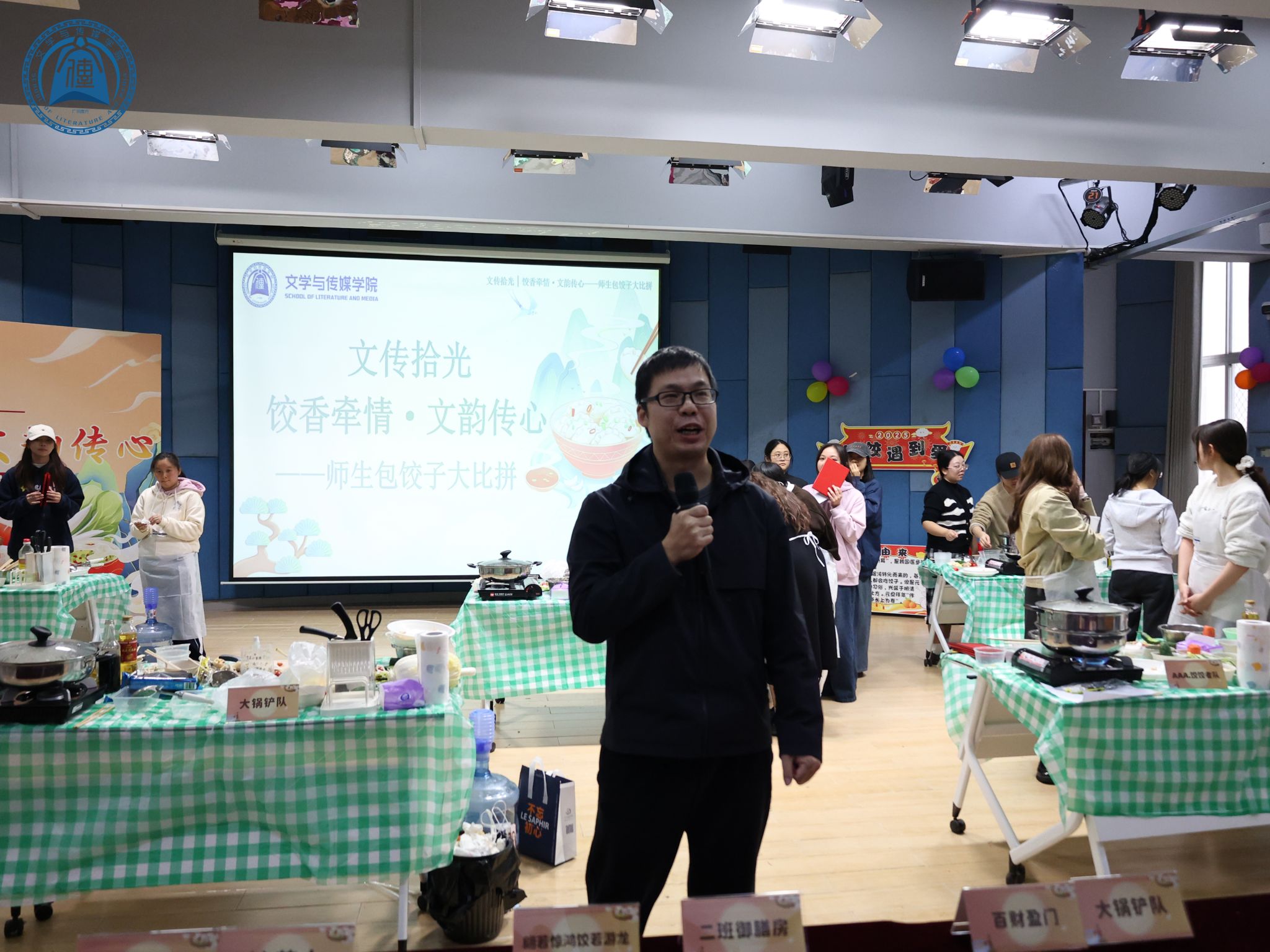 大赛伊始,主持人详细解读比赛规则与评分标准,明确本次活动以培养学生动手能力为核心目标。游鸽副教授在致辞中强调,学院秉持"活力文传,师生共荣"理念,本次劳动实践活动旨在通过包饺子这一实操形式,让学生在擀皮、包馅、创意造型的过程中提升动手能力,在团队协作中增强凝聚力,同时传承中华传统饮食文化,实现"以劳树德、以劳增智、以劳强技"的育人目标。