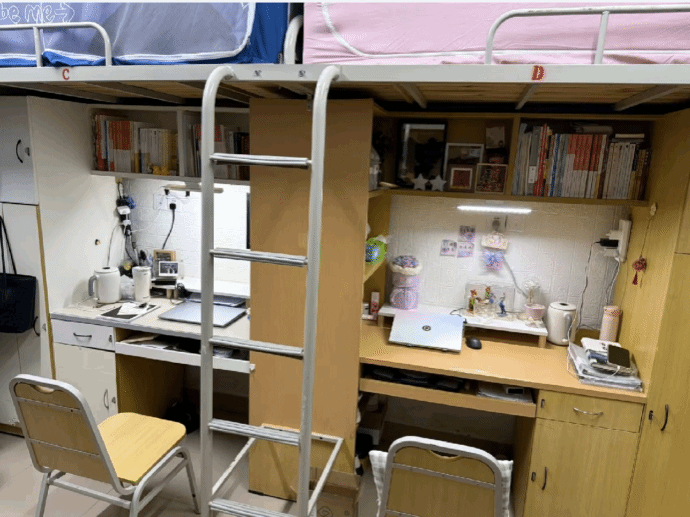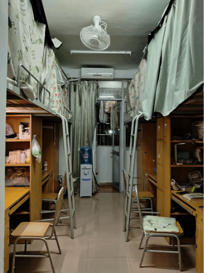 宿舍不大,却藏着青春的热烈。4张书桌并肩而立,承载着我们的学习与热爱;温馨床铺,安放疲惫与梦乡。室友和睦相处,作息规律,营造出安静舒适的氛围。这里是我们在校的小家,见证着彼此的成长与蜕变,简单却满是归属感。