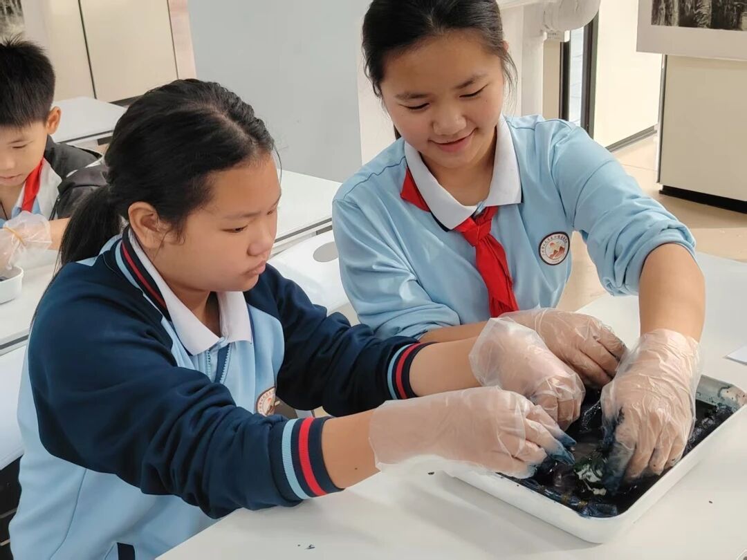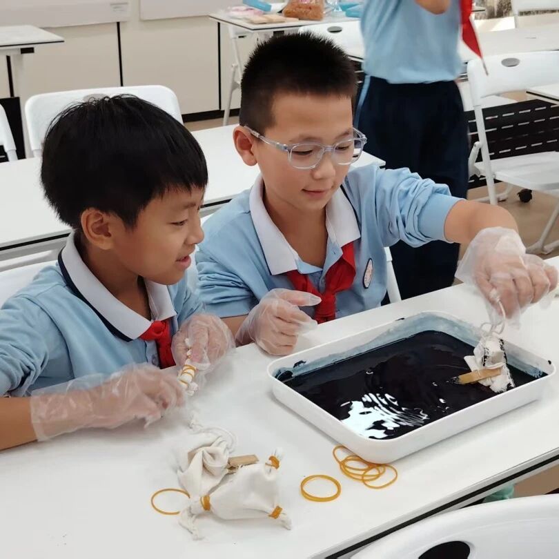 相信这份对扎染抽绳袋所承载的传统文化的好奇与热情,会像小种子一样悄悄种进同学们的心田。随着时间的推移,这颗种子会生根发芽,让非遗的花朵在抽绳袋等更多载体上绽放出更多绚烂的光彩,使扎染这一非遗技艺在新时代不断传承与创新。