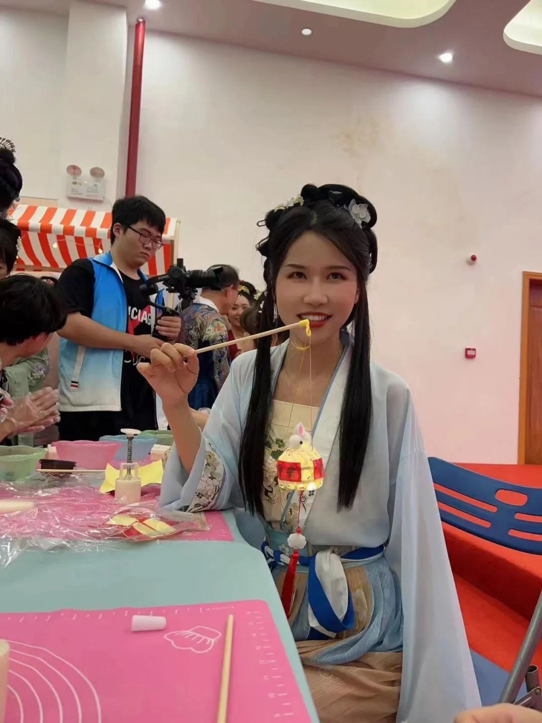 此次游园会活动,还有一些同学自愿成为志愿者,为老师、同学们营造了一个愉快的节日氛围。“我感受到了老师和同学们的热情和欢乐,他们穿着汉服,露出了灿烂的笑容。”来自2022级新闻专业的陈彦臻同学说。在此次活动中她作为拍摄志愿者为大家留下了许多精彩的照片。作为志愿者的她觉得通过这次活动,不仅锻炼了自己的组织和沟通能力,还与老师同学们度过了一个令她难忘的中秋。