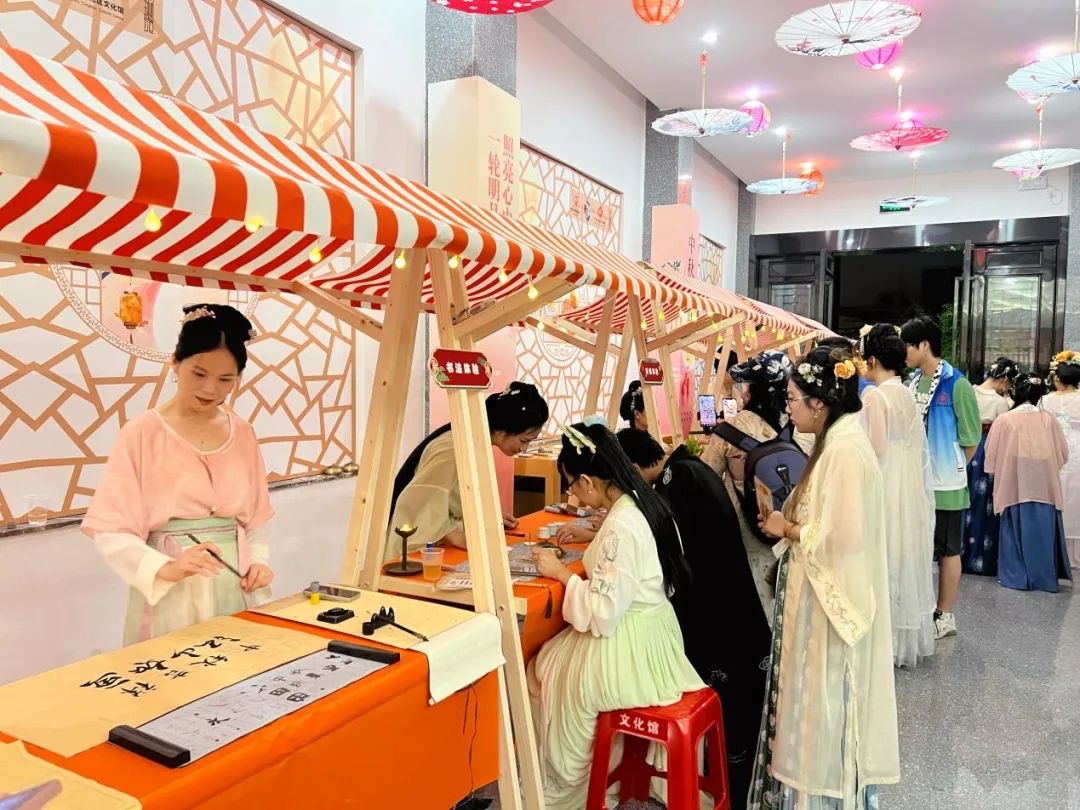 作为本次活动的主持人,2022级新闻学专业的汪一涵同学表示非常荣幸。“游园会”让她有不一样的体验:“大家都穿着汉服,开展古人的活动,自己做月饼,写书法,画团扇和点茶等活动,都让我更深入地学习到了一些中华传统的优秀文化,见识也更加广阔了。”